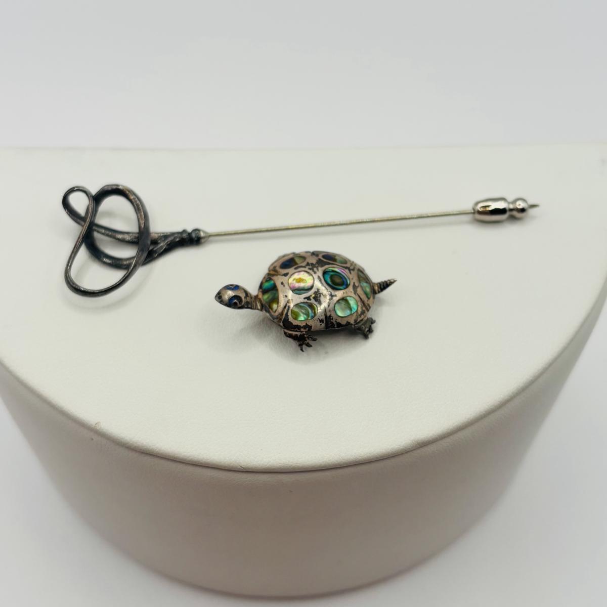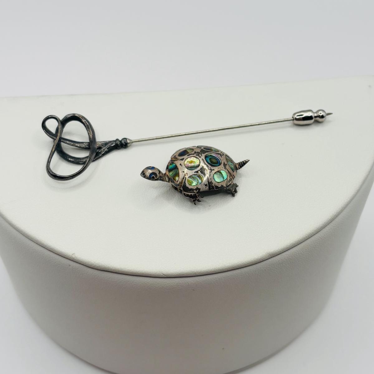 Lot 511J: Vintage Maricela Sterling Silver & Abalone Turtle Brooch, Sterling Silver Musuem of Modern Art Stick Pin