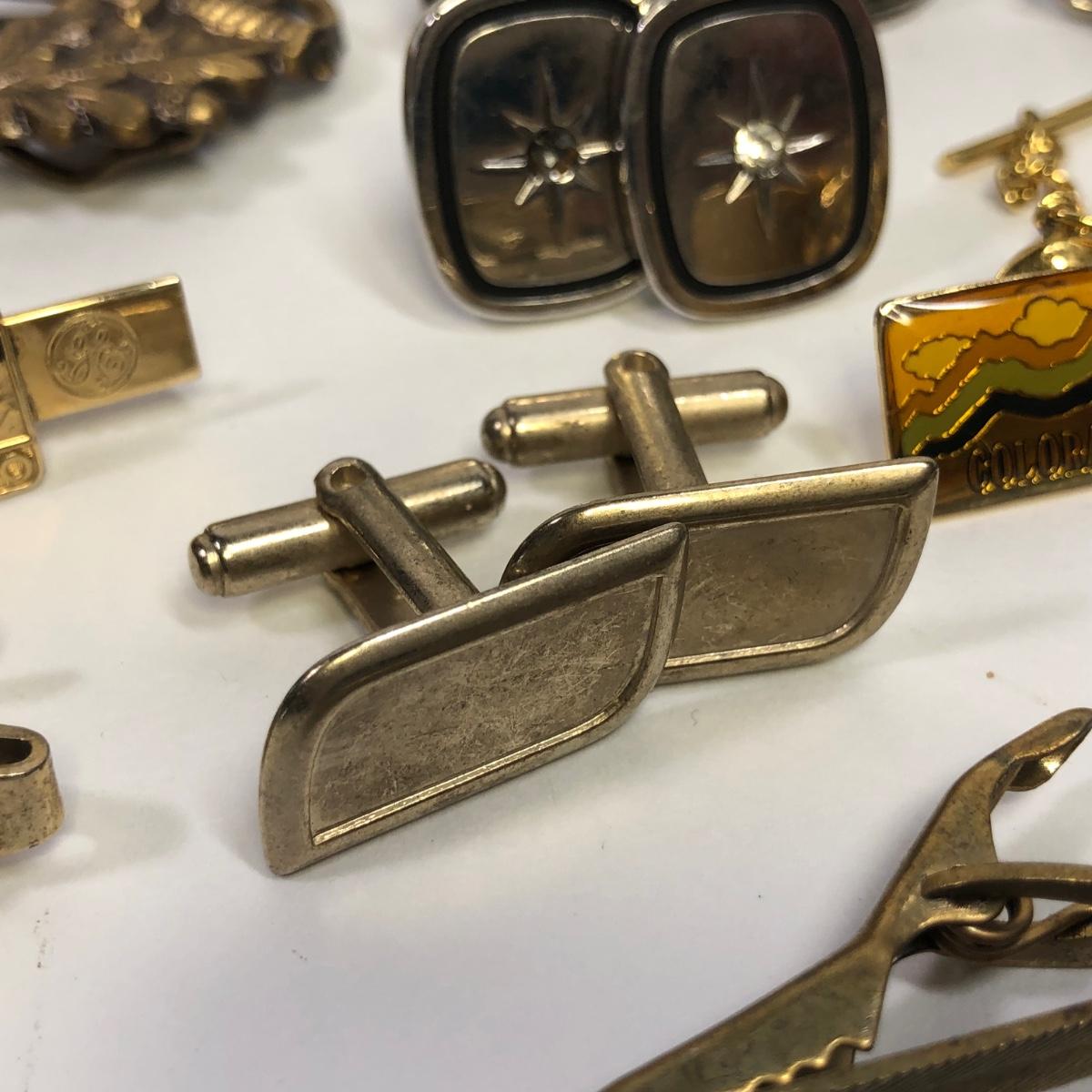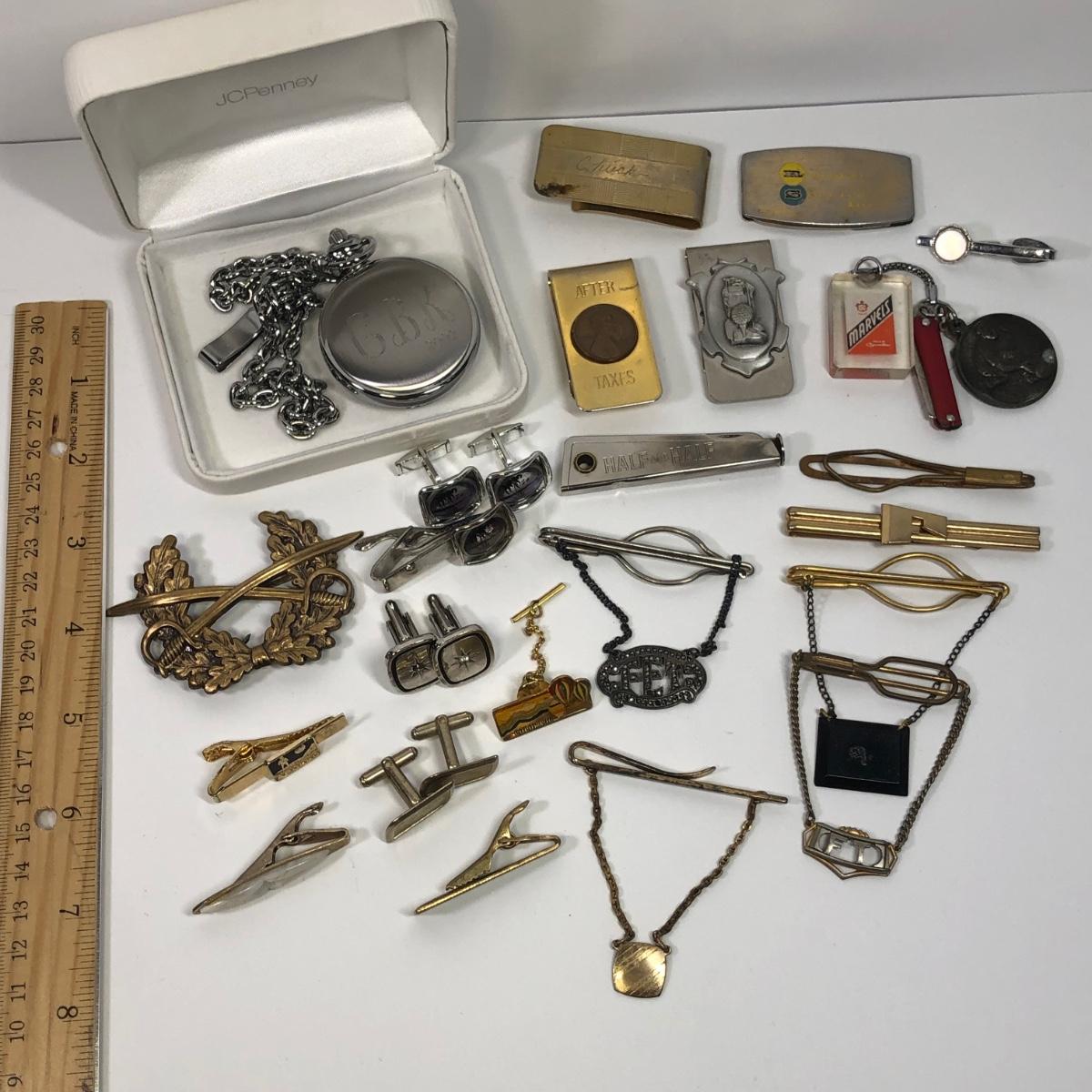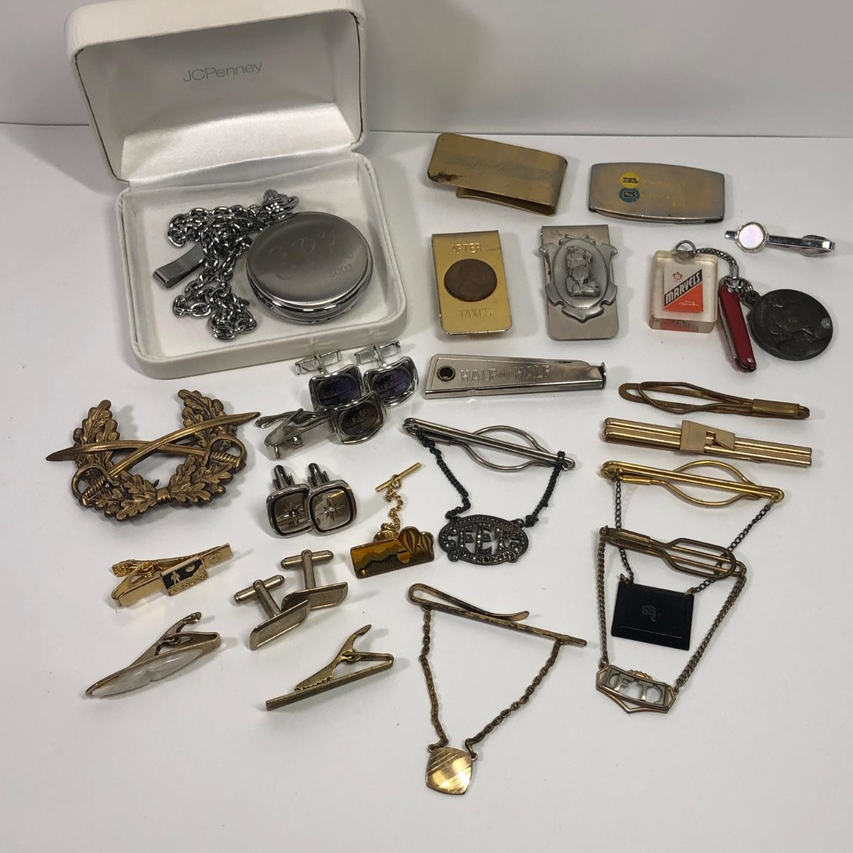 LOT 512M: Collection of Tie Clips, Cufflinks, Money Clips, Keychains & More
