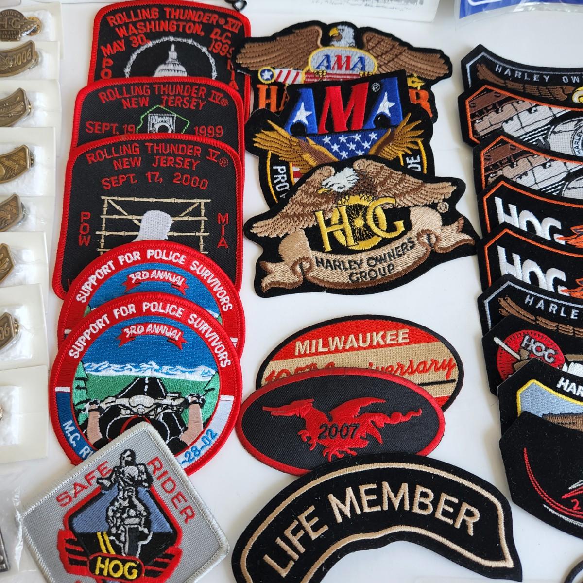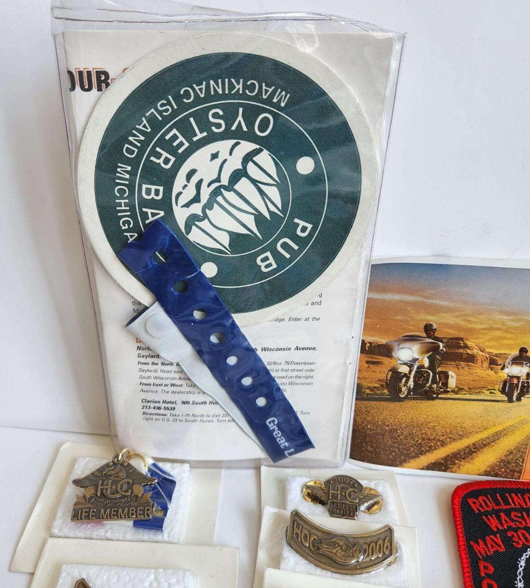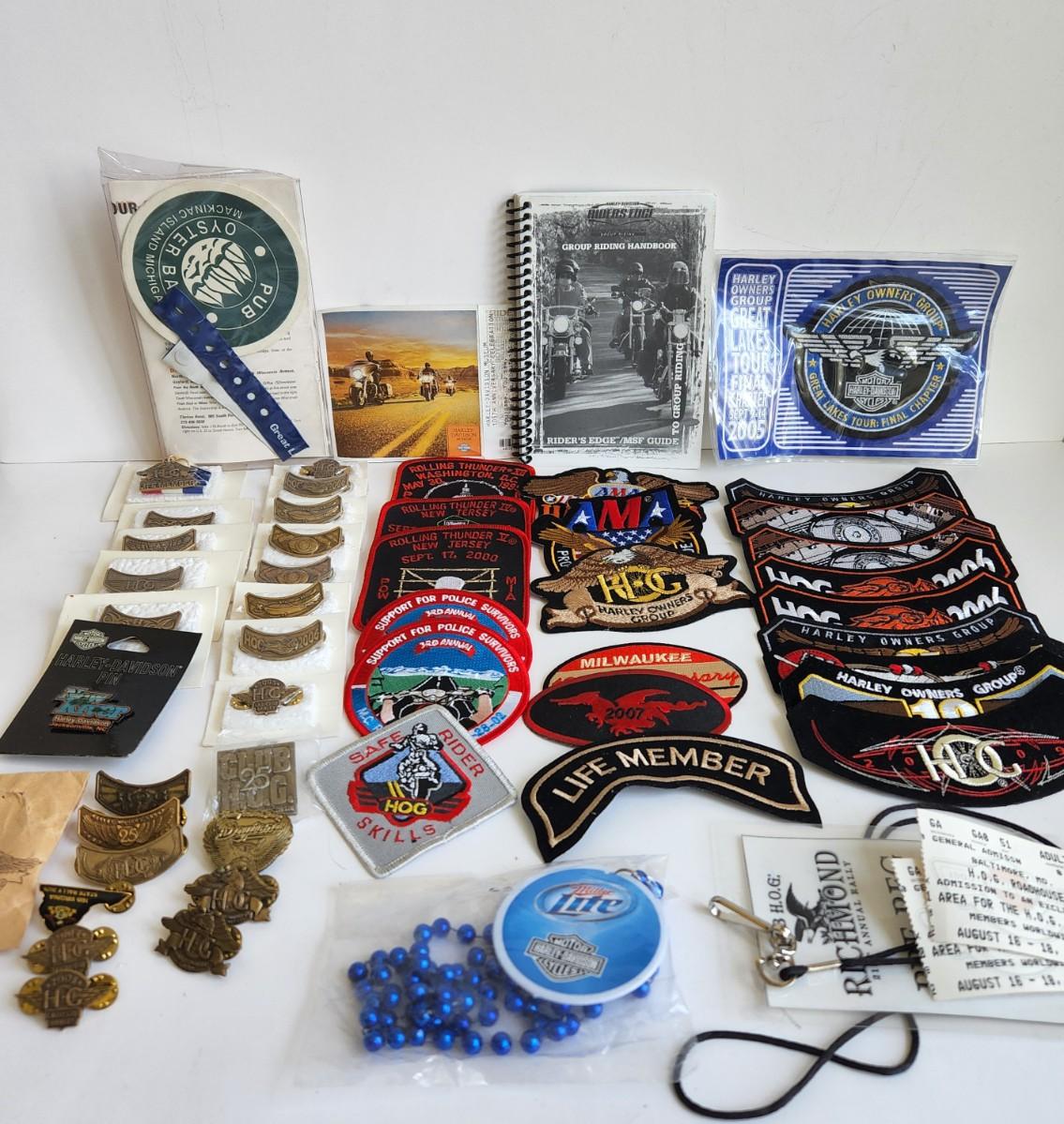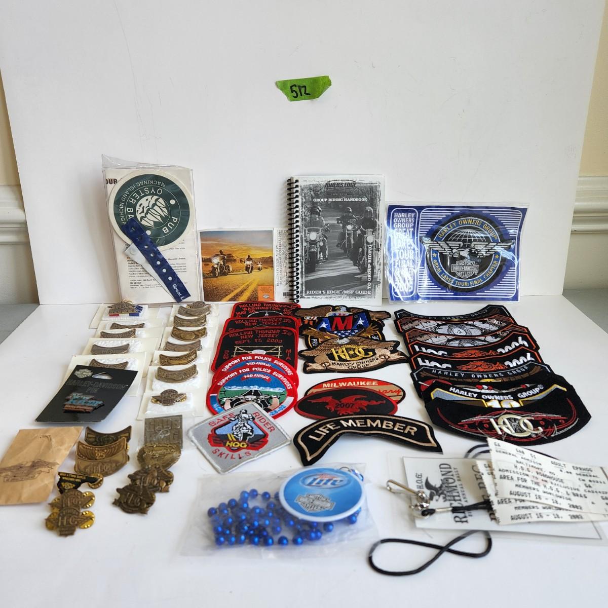 LOT 512RP: Huge Collection of Harley Davidson Members Only Pins, Patches, & More!