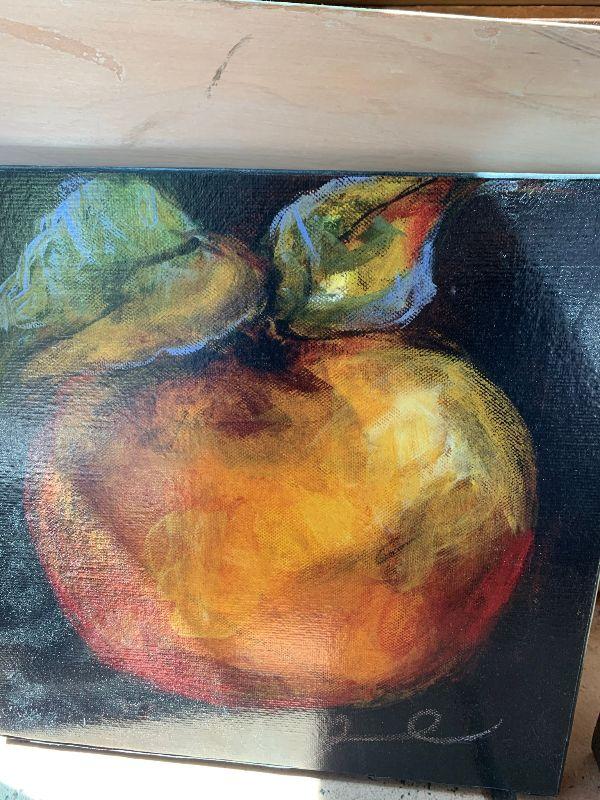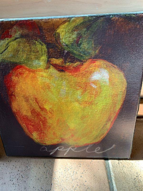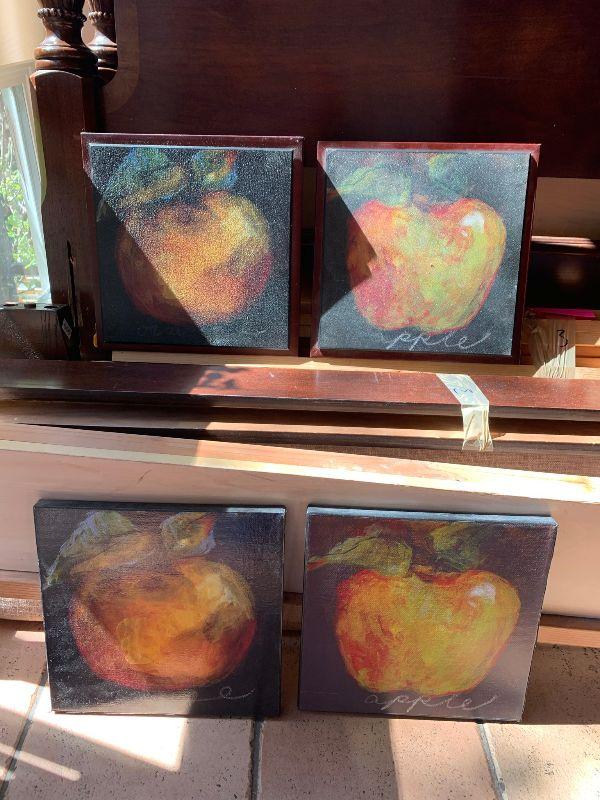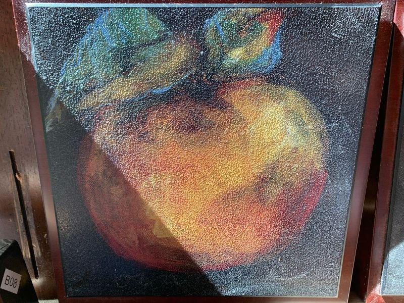 2 wooden frame fruit pics and 2 not framed pics - 4 total