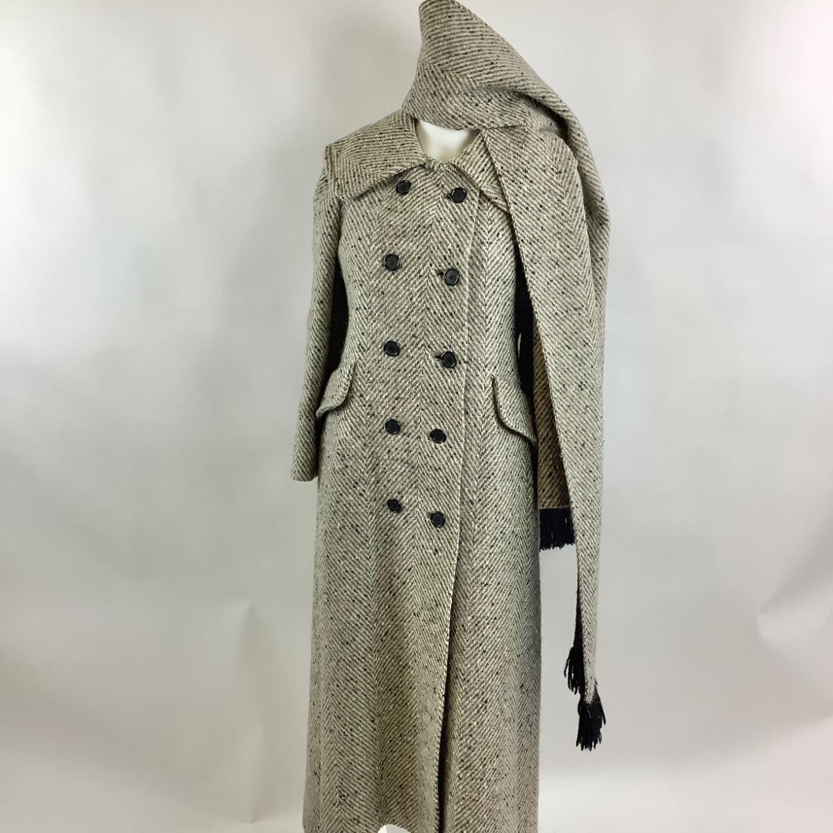 Carlton Deb, Stamford Connecticut, Wool Tweed Double Breasted Fully Lined Coat with matching Scarf.