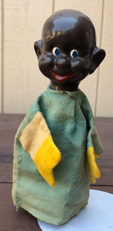 Lot 513: Vintage Black Disney Dopey Dwarf hand Puppet, p 1930’s Rare. Composition and fabric
