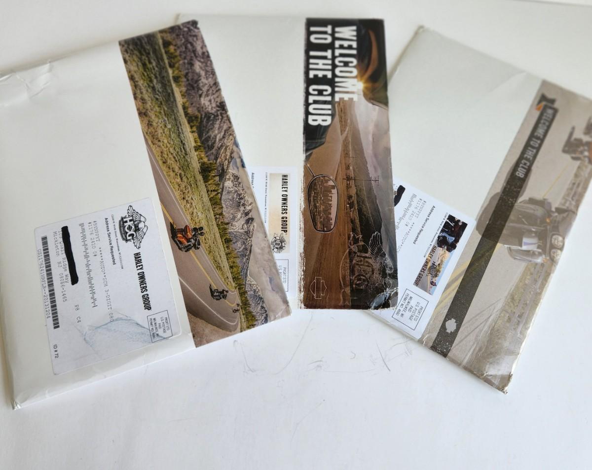 In this collection you are getting several envelopes (unopened) containing pamphlets, Pins, Patches, and more. Some of the envelopes have been opened. These were sent out to Harley members. Please see all pictures as they are the best representation of the items. The pictures show condition, measurements if taken, and what is included in the lot. Due to the large amount that we photograph and the time frame, we are not always able to take measurements. All items unless noted, are pre-owned and have been used. If you purchased furniture, you must bring help. We do not allow one person to carry large furniture out on their own. Bring help, tools and a truck for the safety of our client’s homes, and your personal safety. Any damages that result to the property including walls, and floors due to moving of the furniture will be charged to the buyer. Company policy. Thank you.