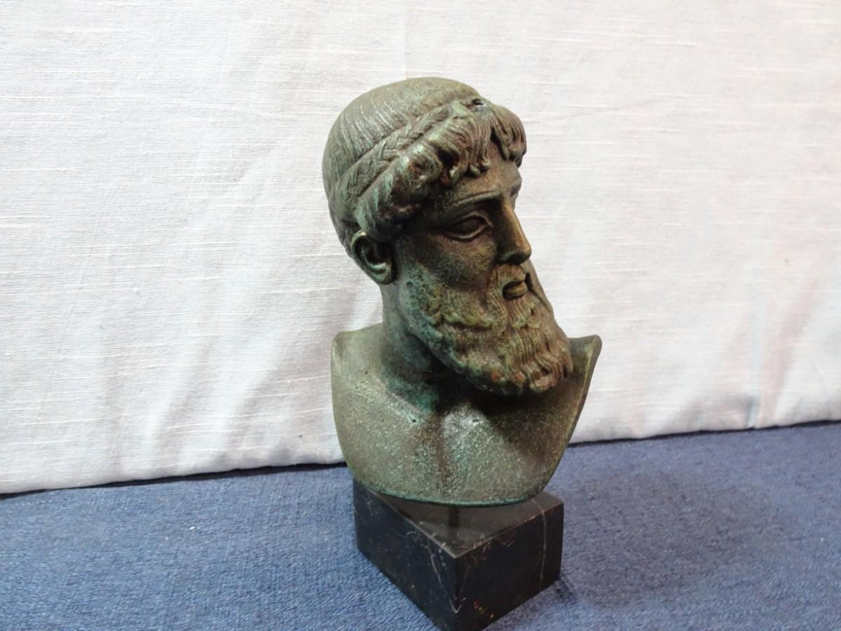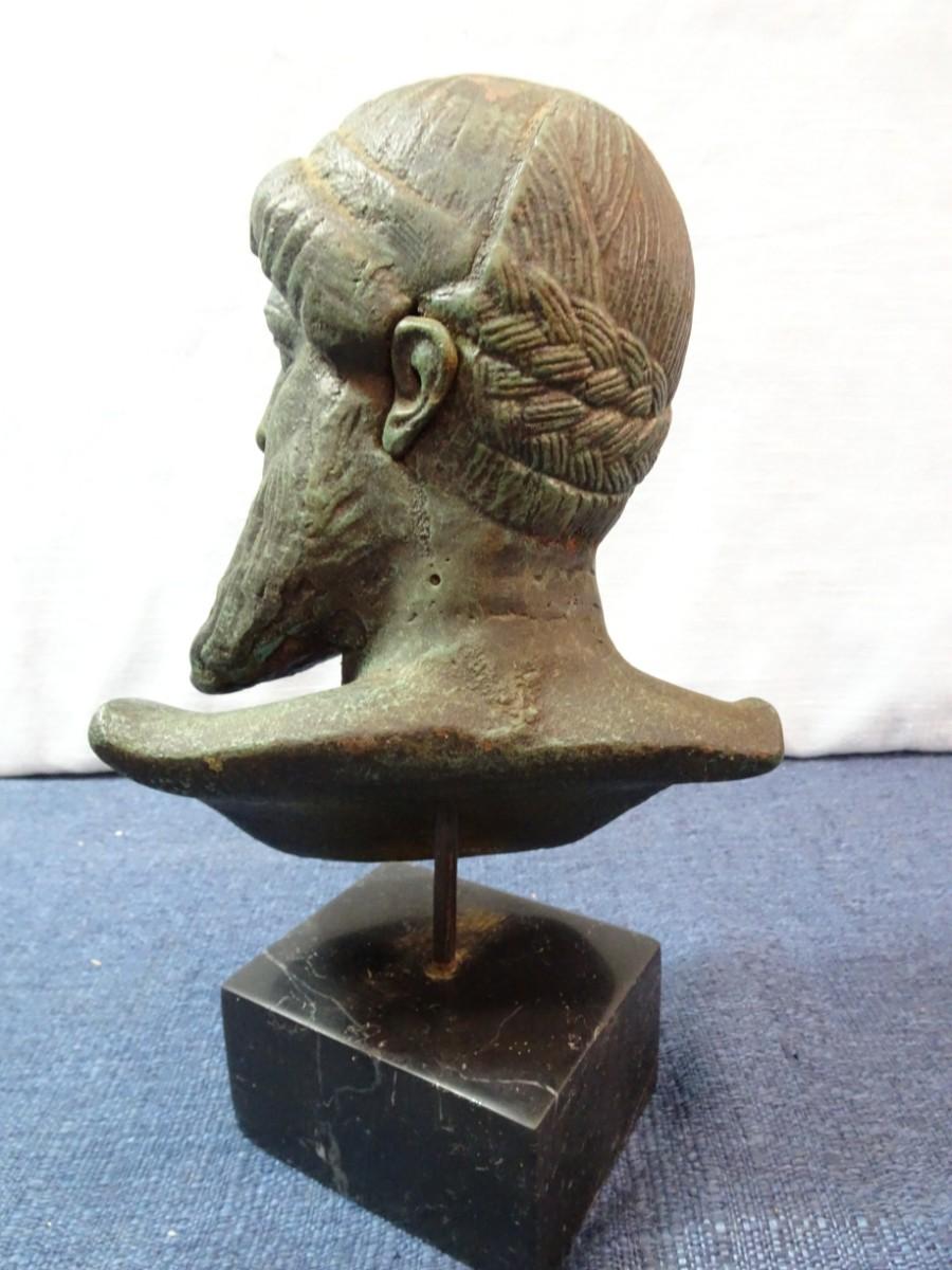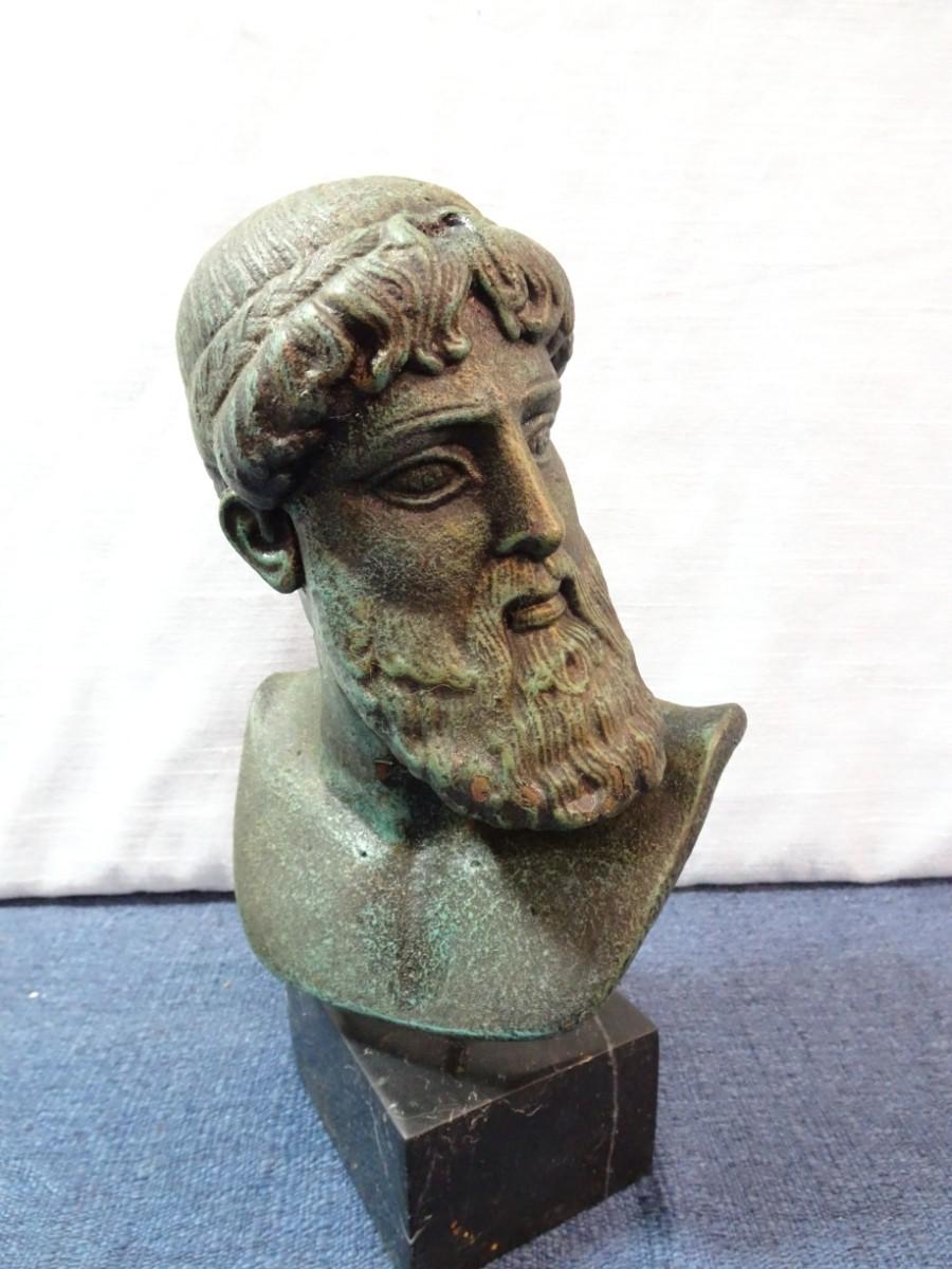 LOT 514. POSEIDON BUST ON MARBLE BASE. SIGNED G. LIOULIAS
