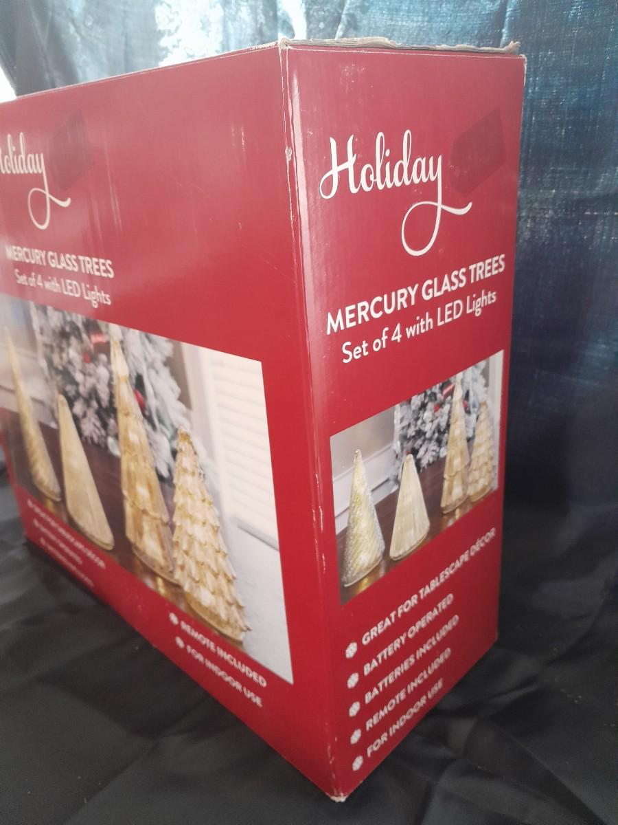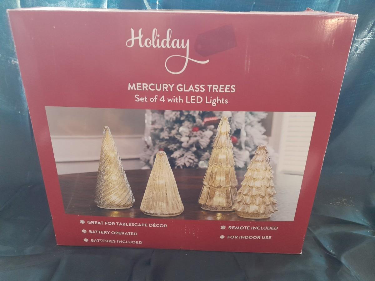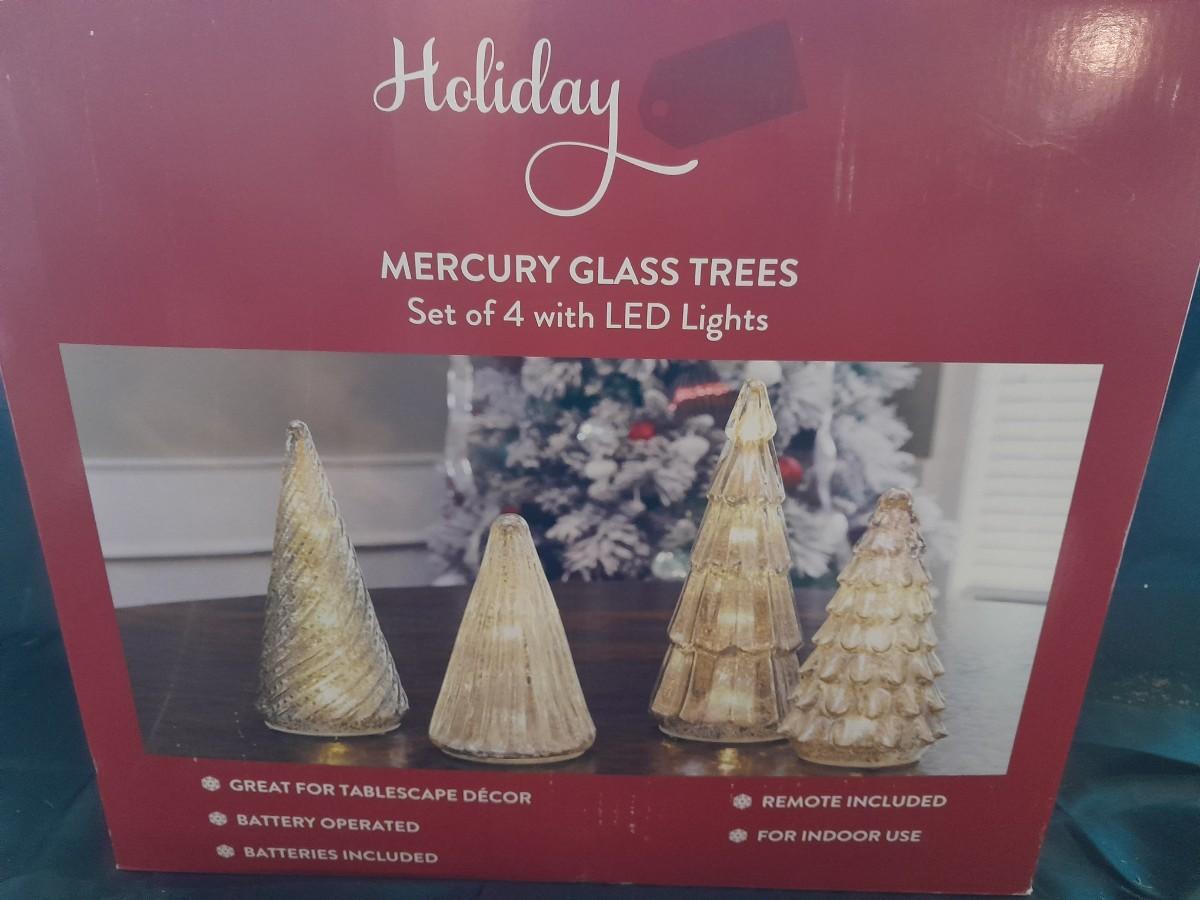 HOLIDAY MURCURY GLASS TREES WITH LED LIGHTS SET OF 4