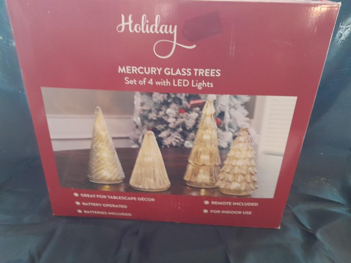 LOT 514 HOLIDAY MURCURY GLASS TREES WITH LED LIGHTS SET OF 4