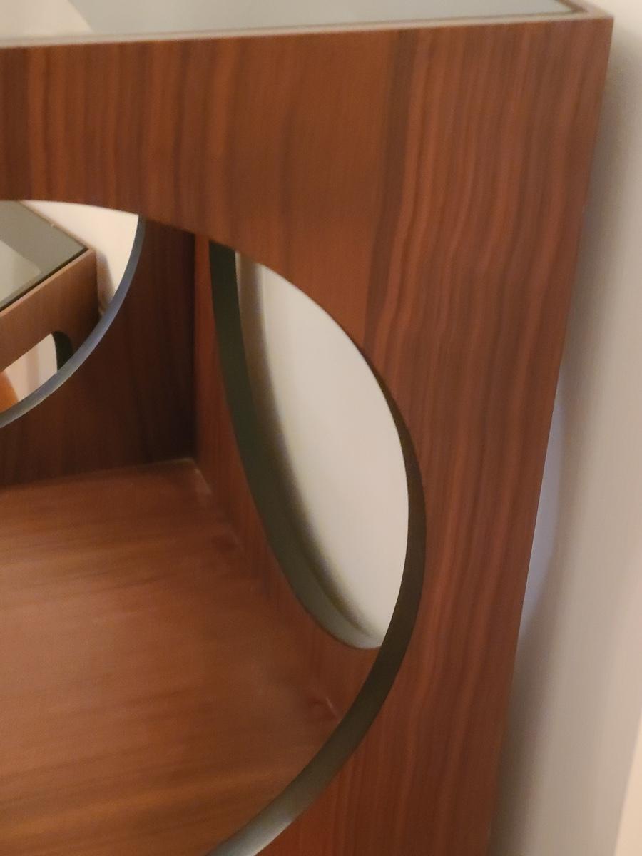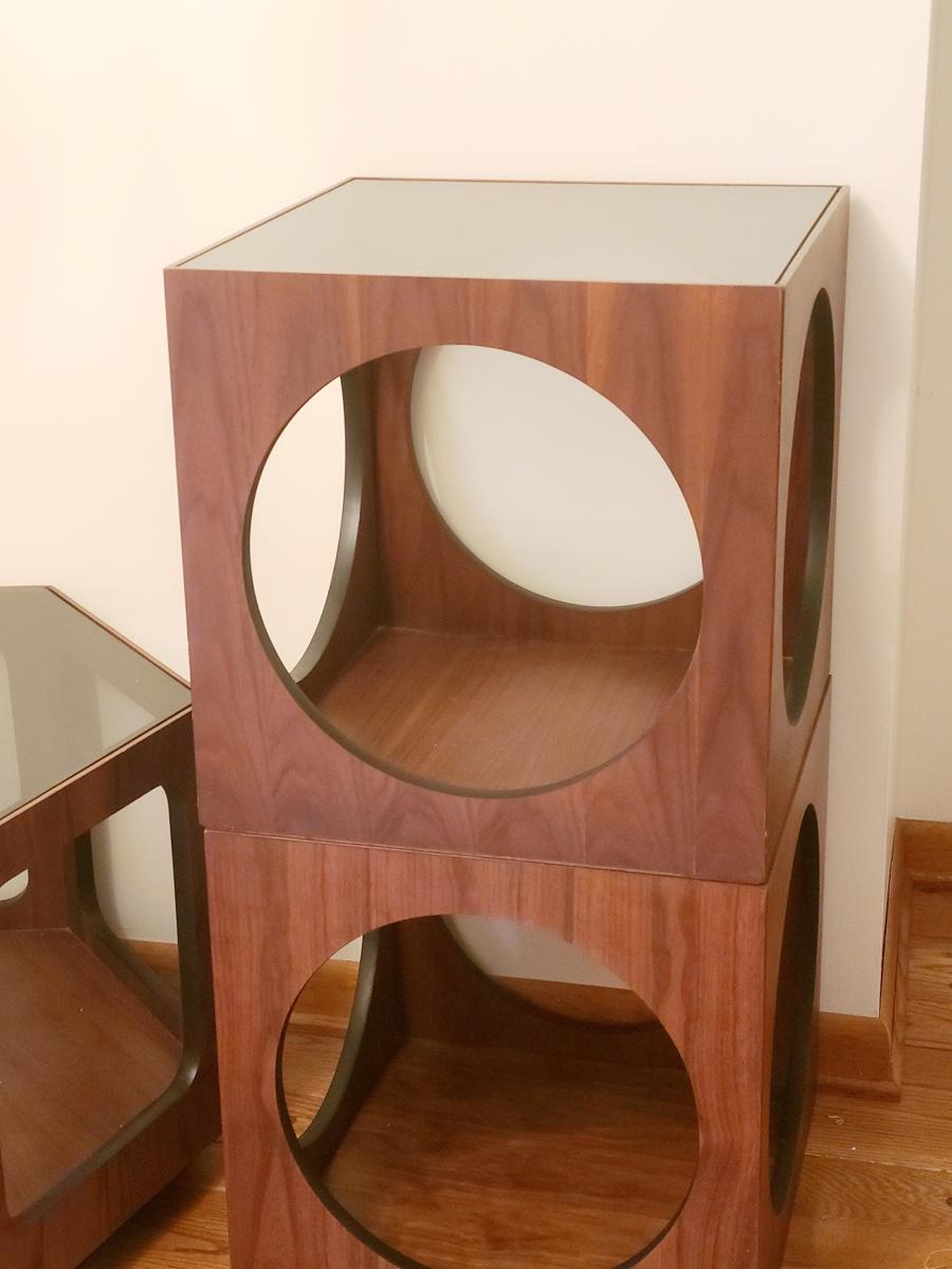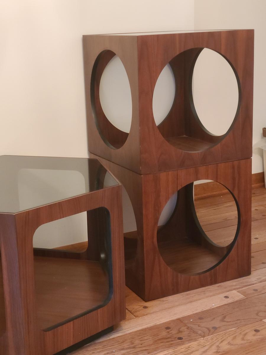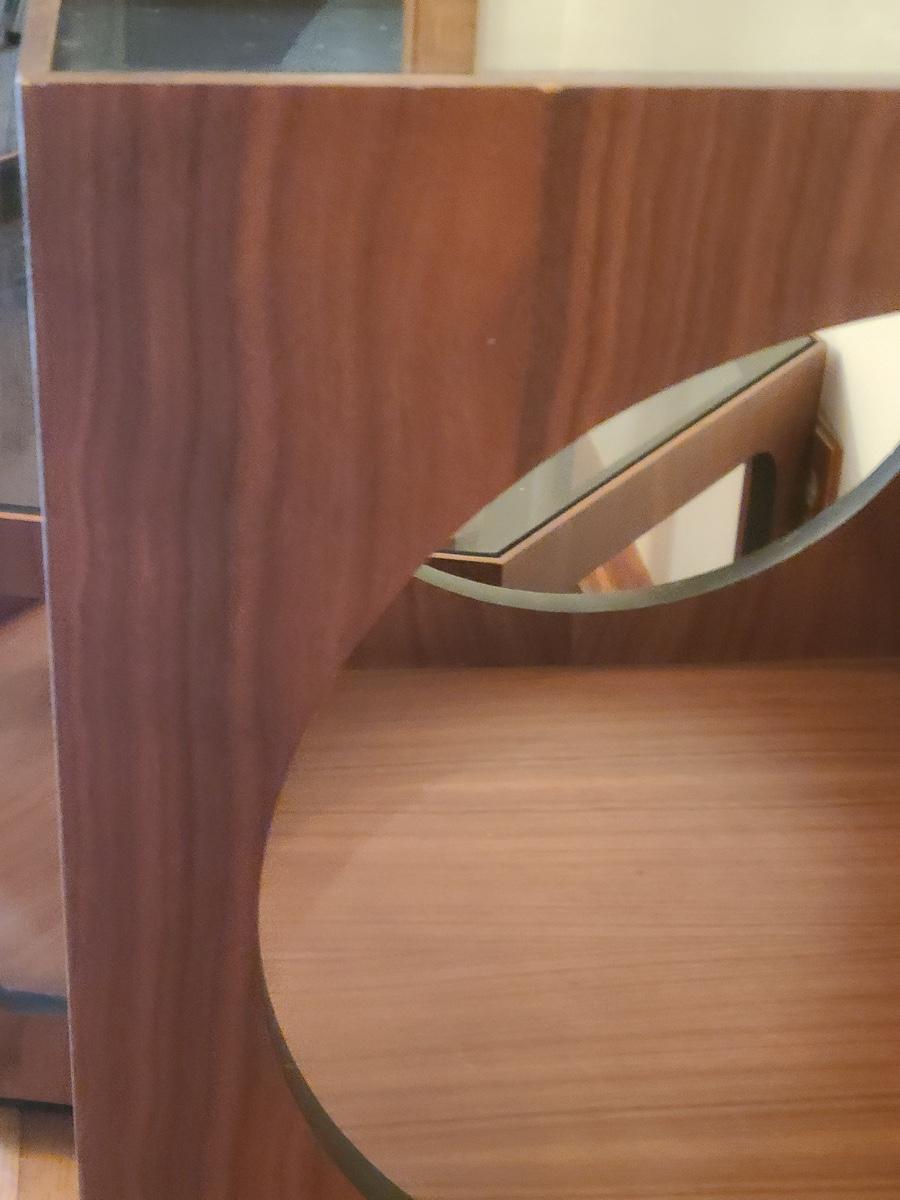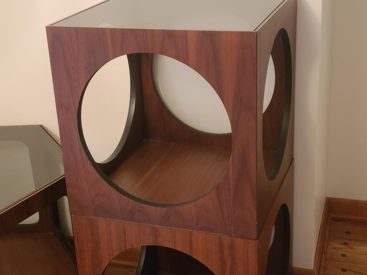 This is such a fun set. These pieces can be used together or alone. The small side tables can be used bedside too! The glass is a smokey grey color, and the wood is gorgeous. The two square end tables can be used alone flanking a couch, or put together as a coffee table. Recently these have been used stacked as seen in the pictures, and you can take out the second piece of glass, and use as cat beds! Fun MCM vintage set by Lane! The pictures show condition, measurements if taken, and what is included in the lot. Due to the large amount that we photograph and the time frame, we are not always able to take measurements. All items unless noted, are pre-owned and have been used. If you purchased furniture, you must bring help. We do not allow one person to carry large furniture out on their own. Bring help, tools and a truck for the safety of our client’s homes, and your personal safety. Company policy. Thank you.