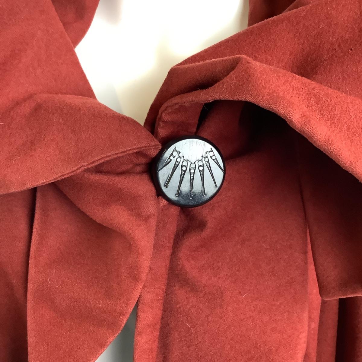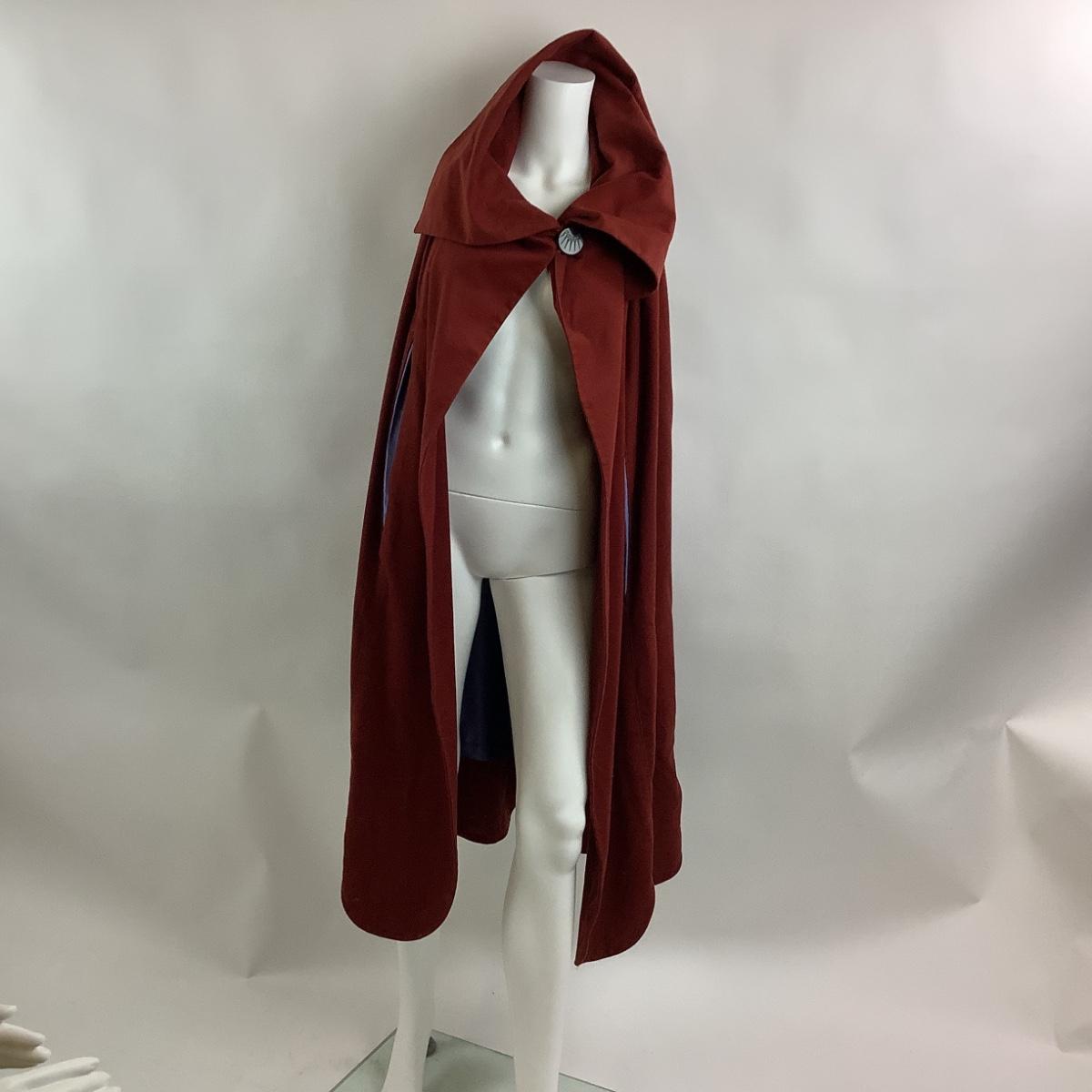 Vintage Burnt Red Cape-let with Purple Liner, Single Button Closure