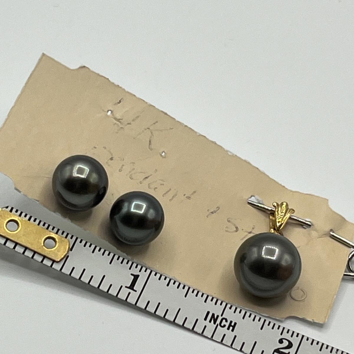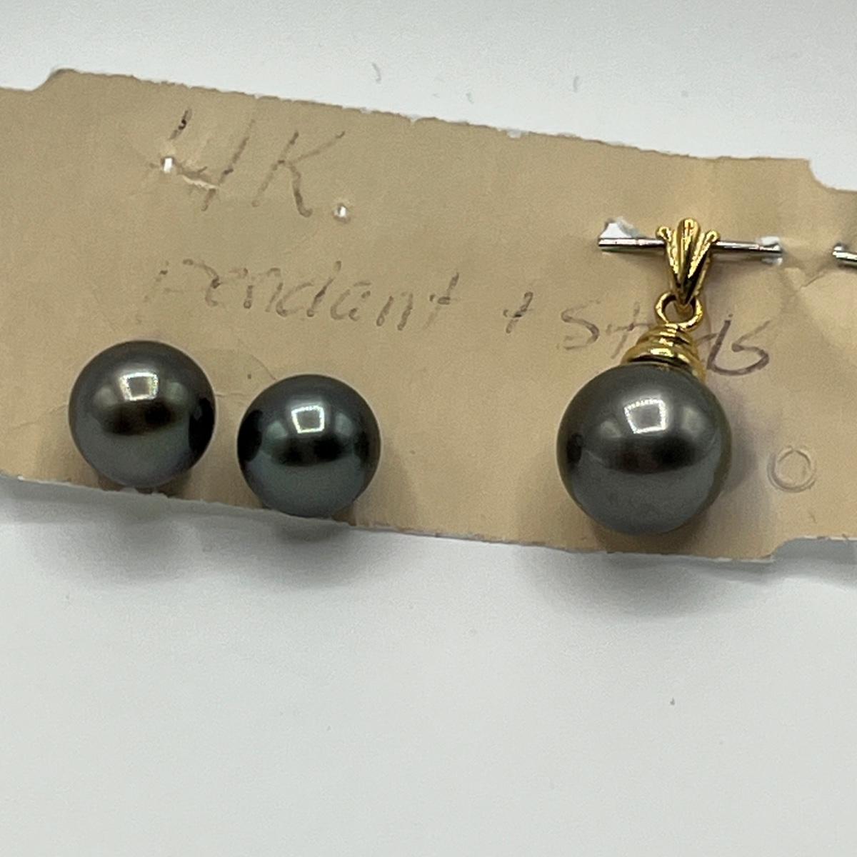 Gray pearls on 14K gold. 2 grams gold, estimated.