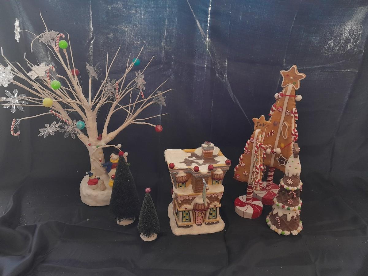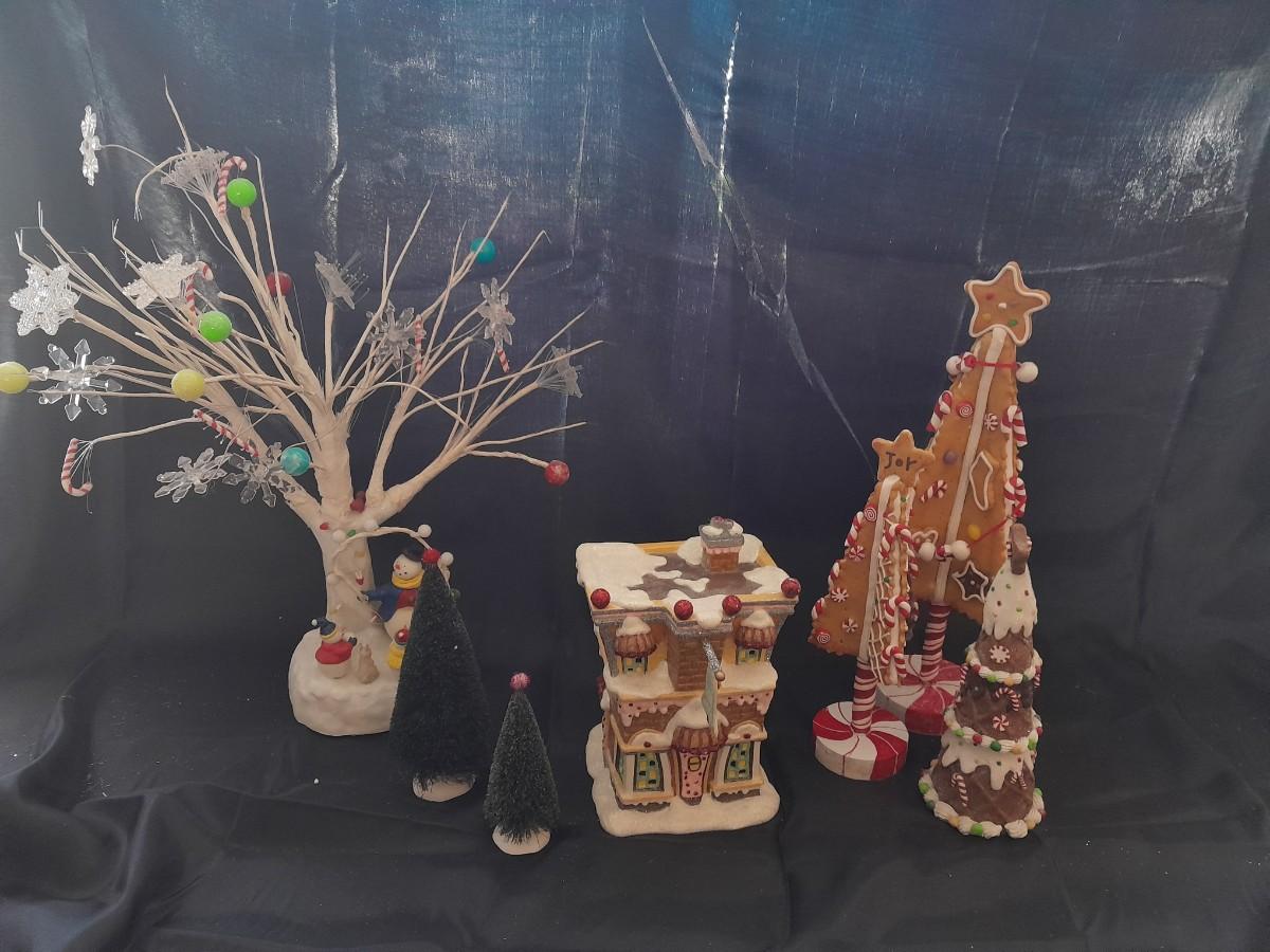 LOT 515 DEPARTMENT 56 VILLAGE HOUSE WITH GINGERBREAD TREES AND MORE