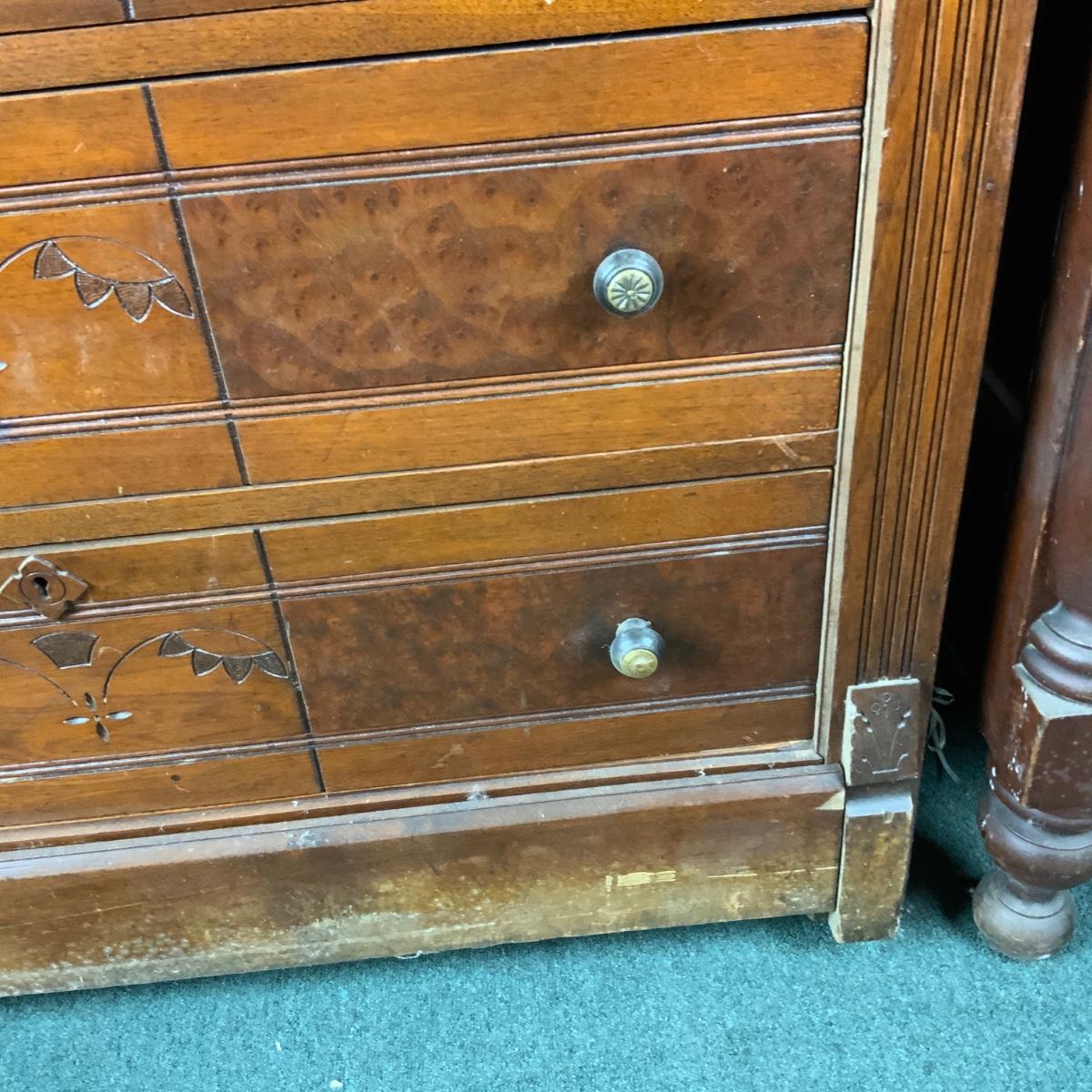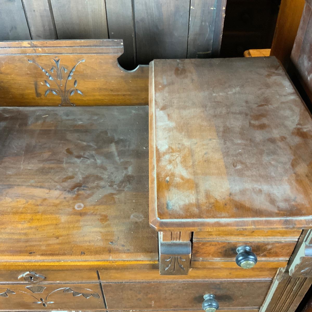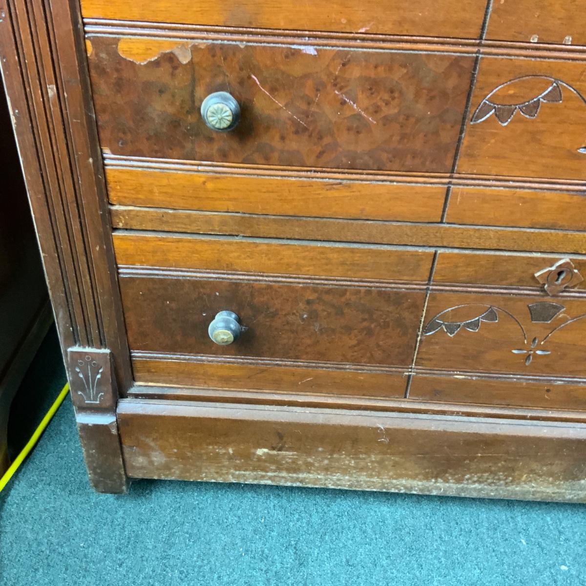 Eastlake Dresser. Would require minimal work. //::\\ Please see photos for details and condition. No attempt has been made to hide any imperfections. All items listed in this auction are warehouse items, and need to be cleaned. A majority of the items need restoration as well. All items are sold AS IS and WITHOUT GUARANTEE. If you are uncertain about an item, DO NOT BID. Due to the nature of this online auction in-person inspection is HIGHLY recommended. All Sales are FINAL. Pick Up Times are FIRM. Please confirm with your own schedule that you can pick up in the scheduled times listed in the Terms and Conditions. Any questions please message the auctioneer. DO NOT Contact The Harp Gallery.