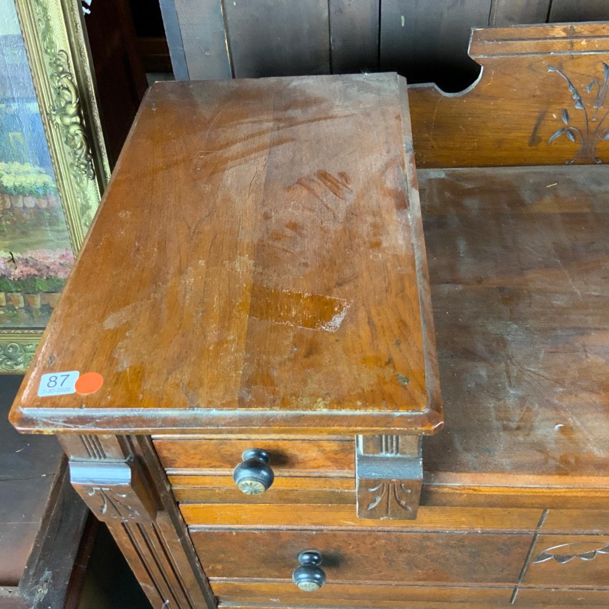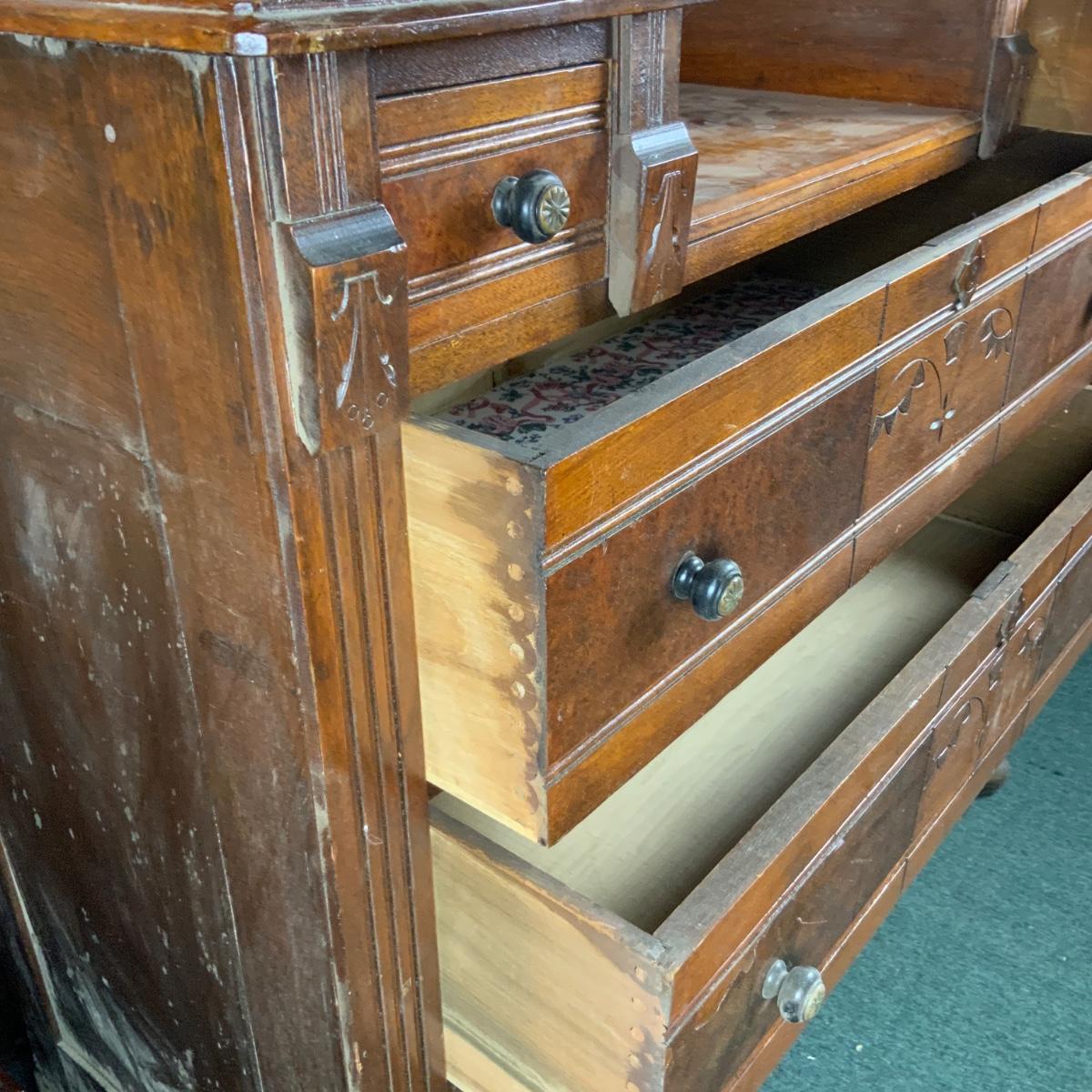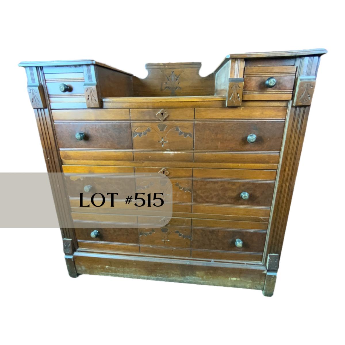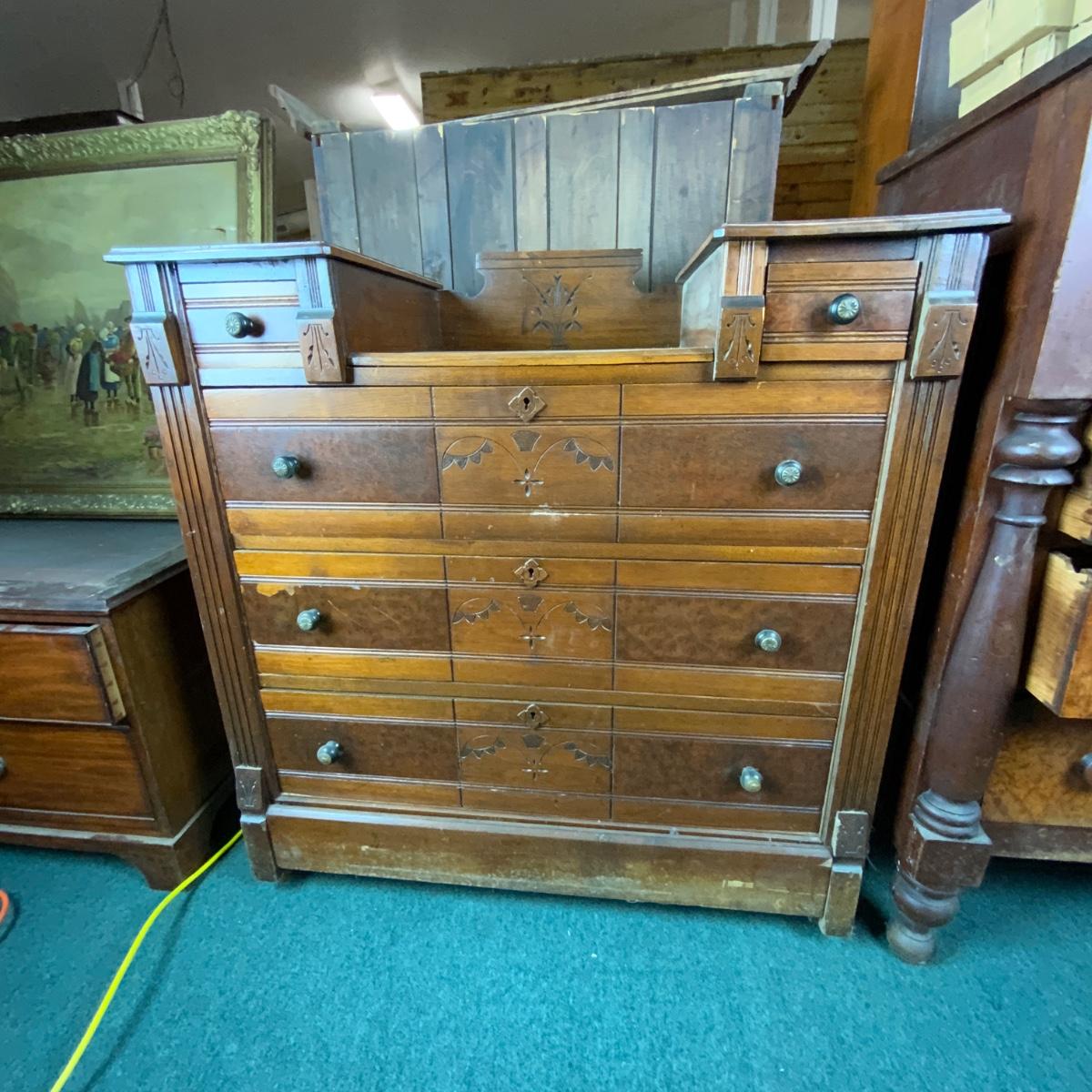 Eastlake Dresser. Would require minimal work. //::\\ Please see photos for details and condition. No attempt has been made to hide any imperfections. All items listed in this auction are warehouse items, and need to be cleaned. A majority of the items need restoration as well. All items are sold AS IS and WITHOUT GUARANTEE. If you are uncertain about an item, DO NOT BID. Due to the nature of this online auction in-person inspection is HIGHLY recommended. All Sales are FINAL. Pick Up Times are FIRM. Please confirm with your own schedule that you can pick up in the scheduled times listed in the Terms and Conditions. Any questions please message the auctioneer. DO NOT Contact The Harp Gallery.