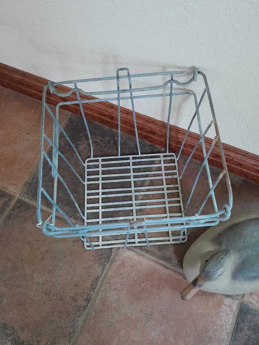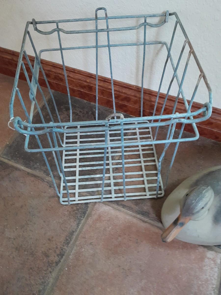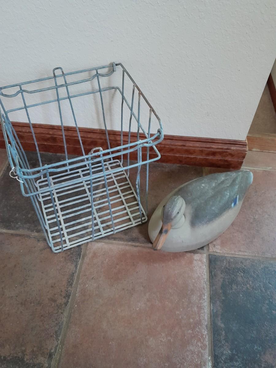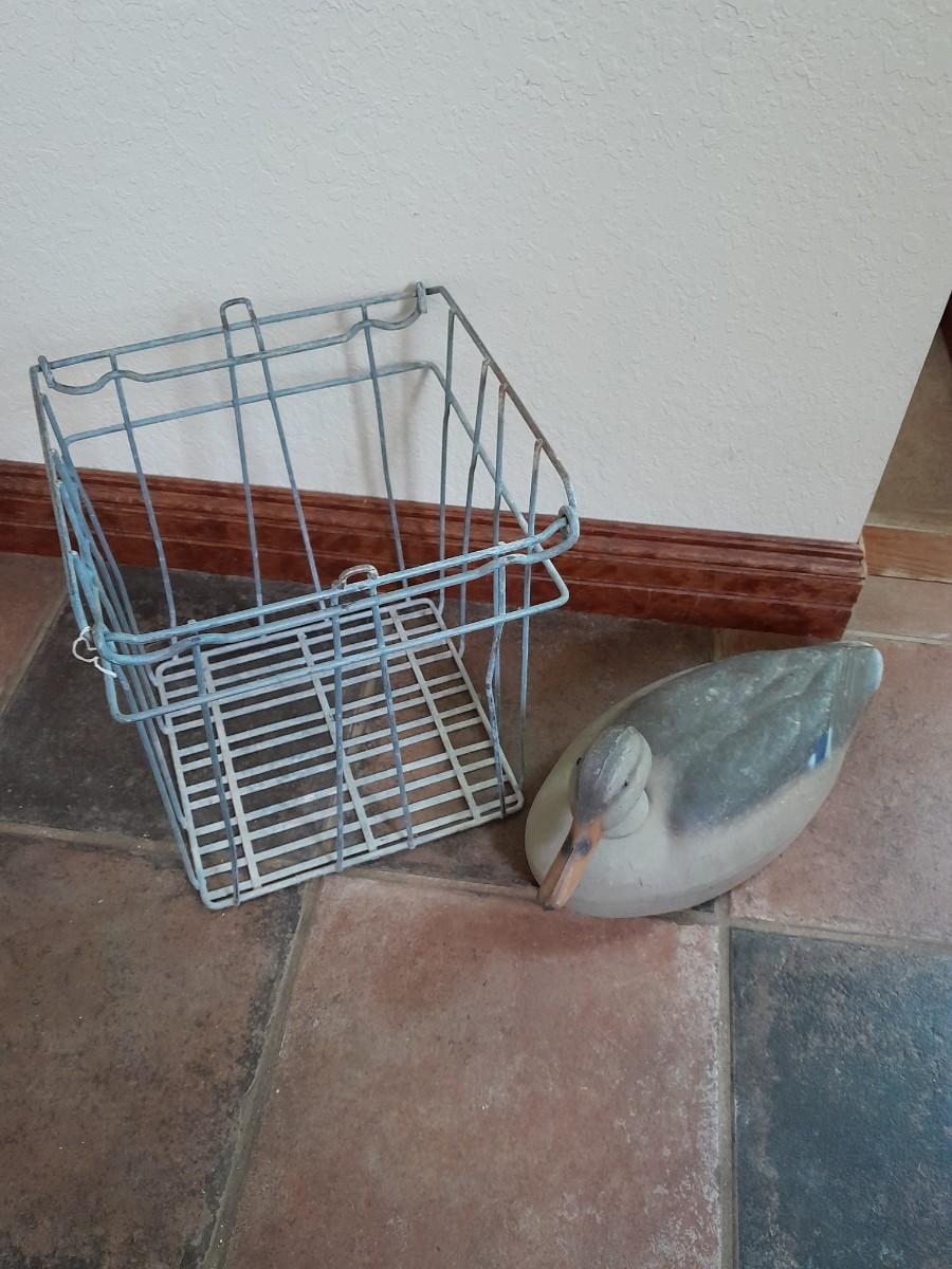VINTAGE METAL MILK CRATE WITH DUCK DECOY