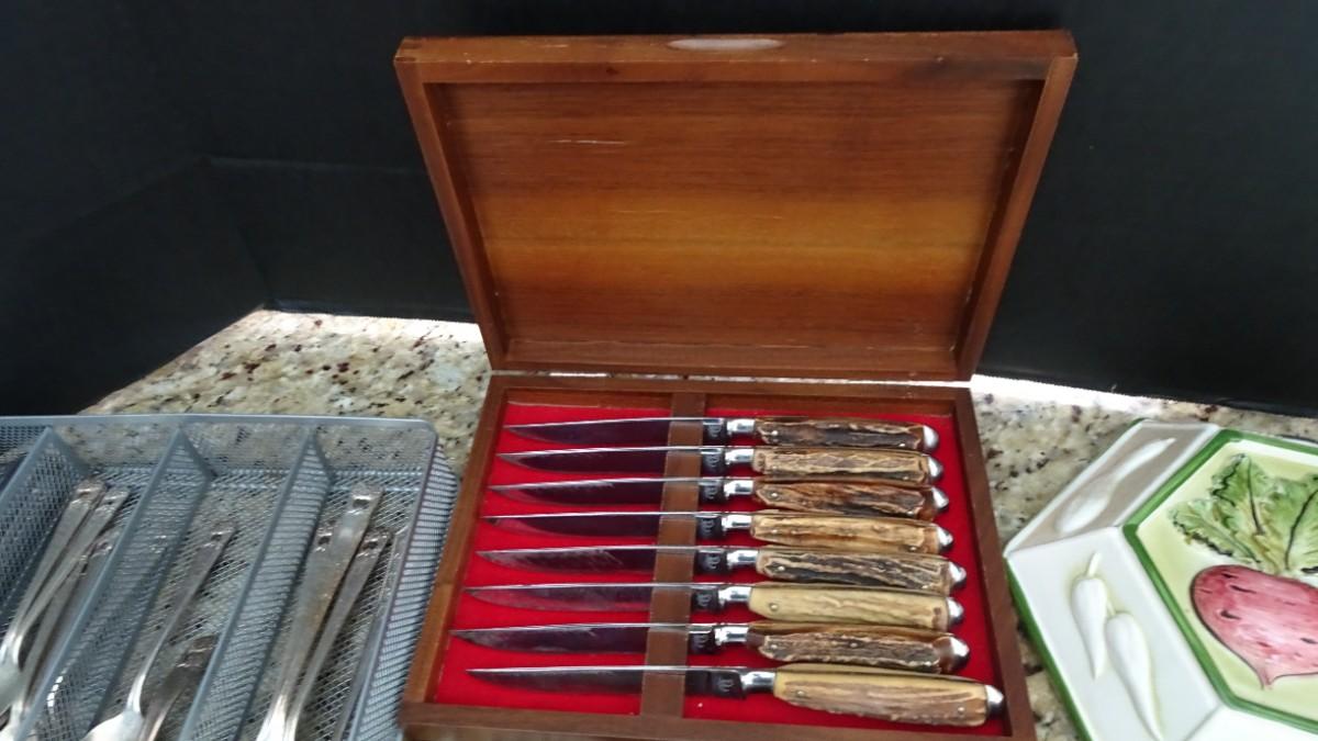 LOT 516 FLATWARE AND ABERCROMBIE & FITCH KNIVE SET MADE IN GERMANY