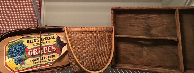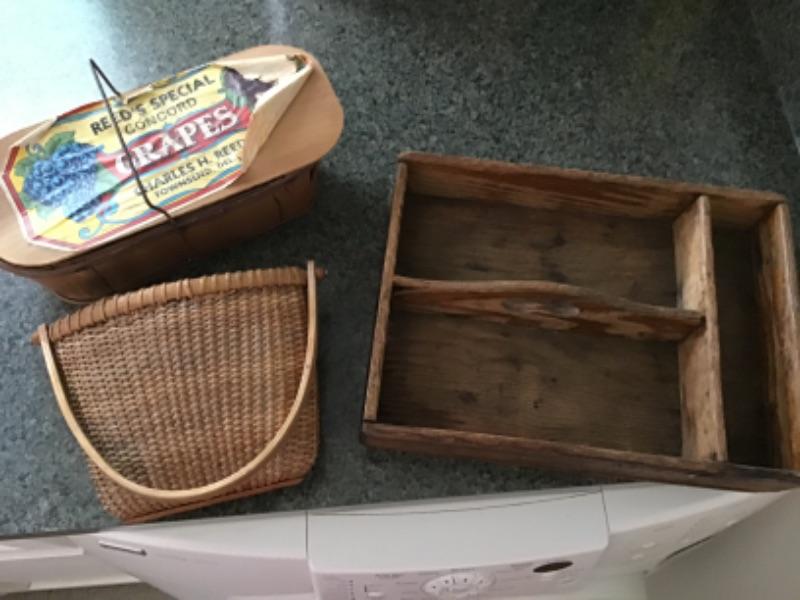 516:  Vintage Grape Carrier, Nantucket Style Basket and Pine Caddy