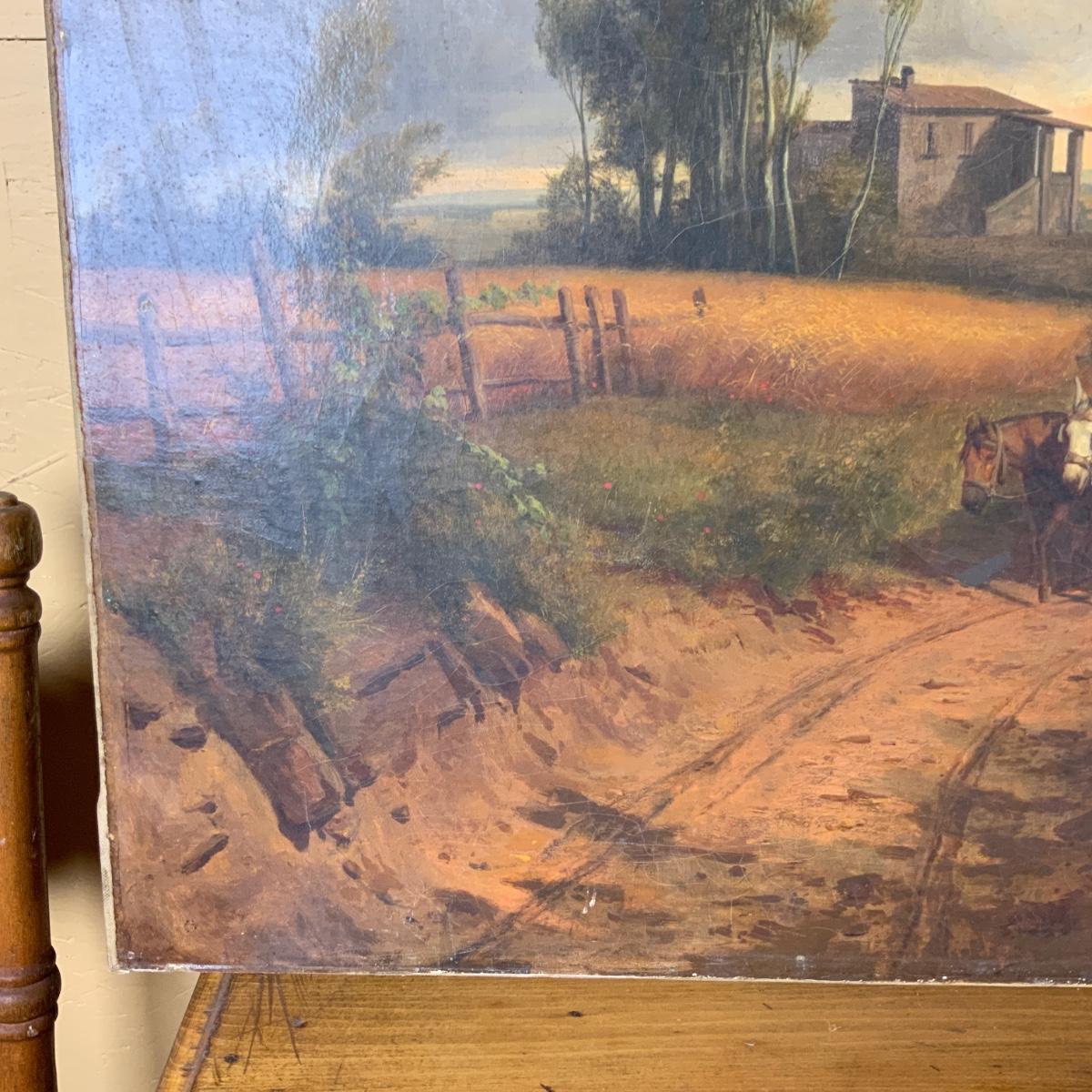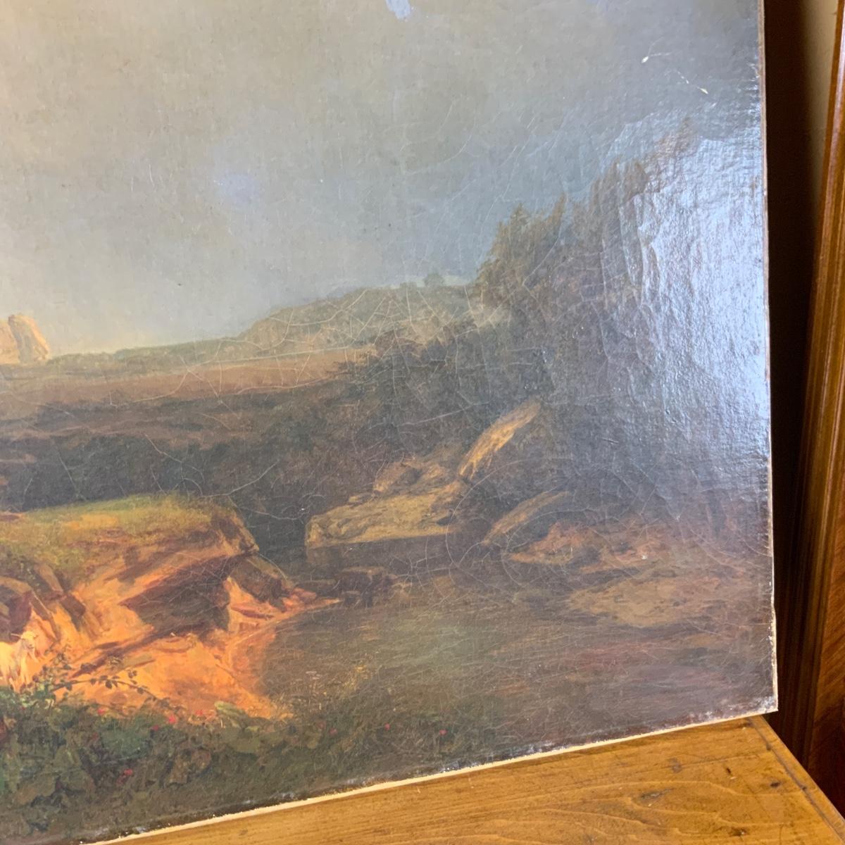 Continental School Landscape. Beautiful color! //::\\ Please see photos for details and condition. No attempt has been made to hide any imperfections. All items listed in this auction are warehouse items, and need to be cleaned. A majority of the items need restoration as well. All items are sold AS IS and WITHOUT GUARANTEE. If you are uncertain about an item, DO NOT BID. Due to the nature of this online auction in-person inspection is HIGHLY recommended. All Sales are FINAL. Pick Up Times are FIRM. Please confirm with your own schedule that you can pick up in the scheduled times listed in the Terms and Conditions. Any questions please message the auctioneer. DO NOT Contact The Harp Gallery.