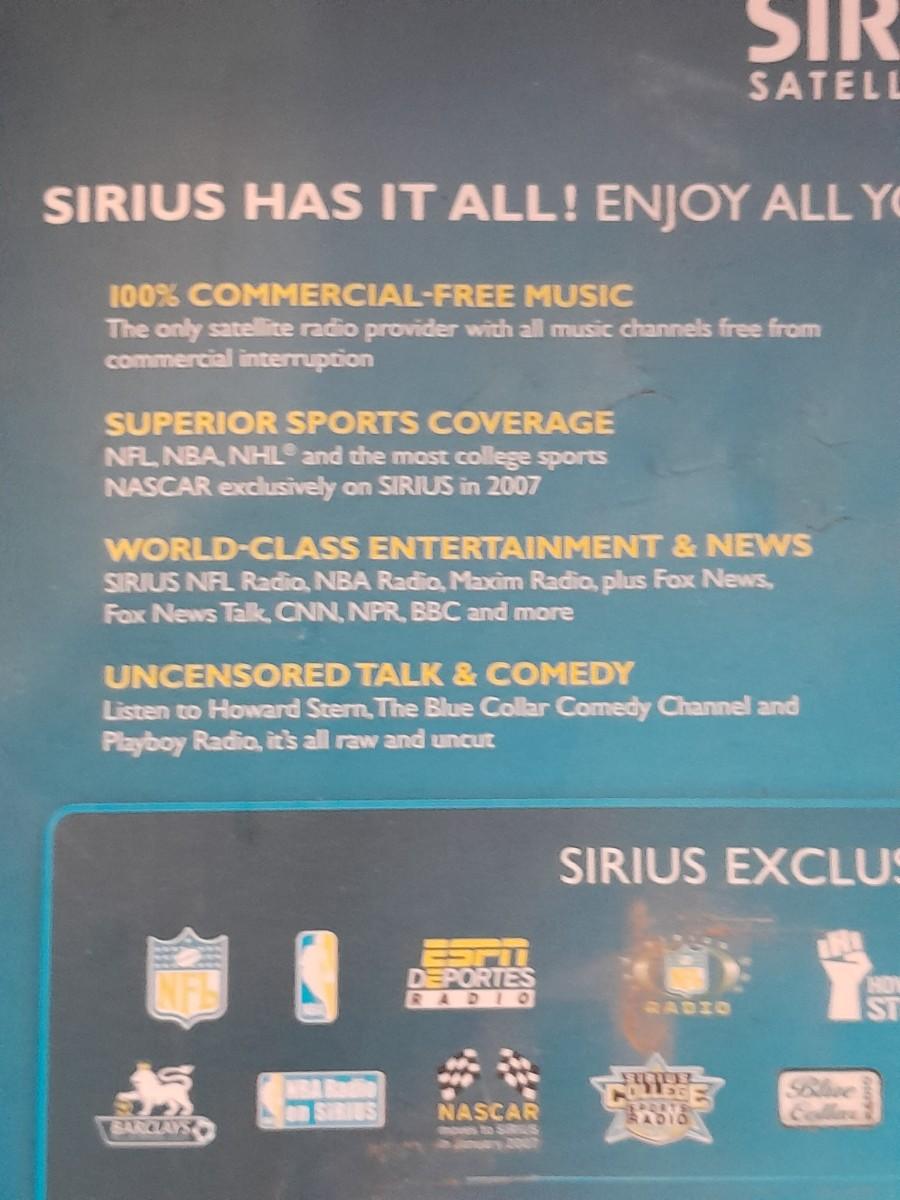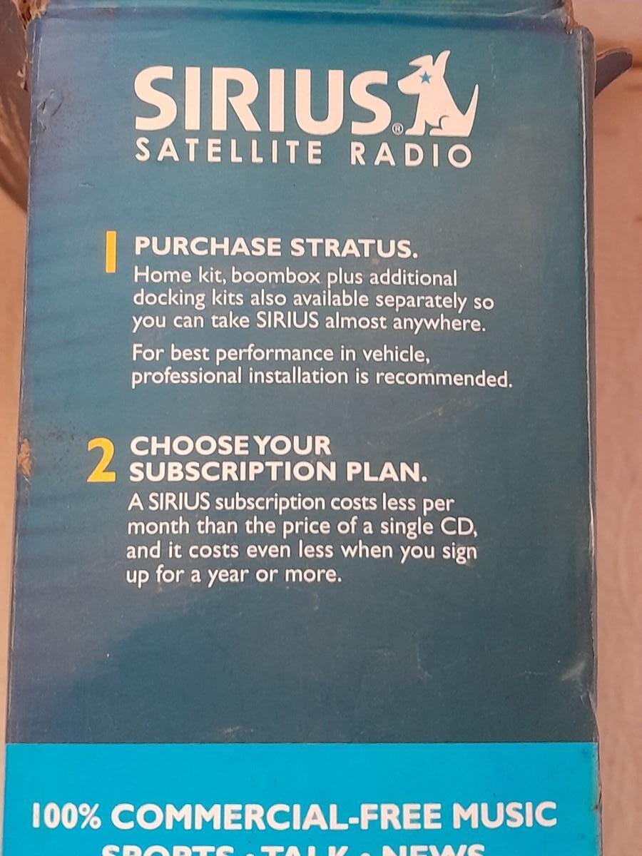 SIRIUS SATELLITE RADIO ITEM APPEARS NEW IN THE BOX. BOX HAS SOME WATER DAMAGE.