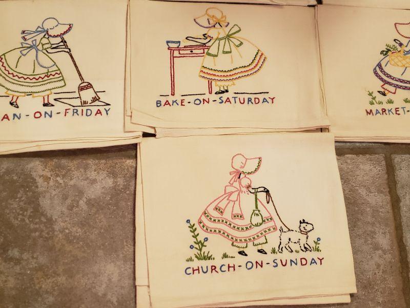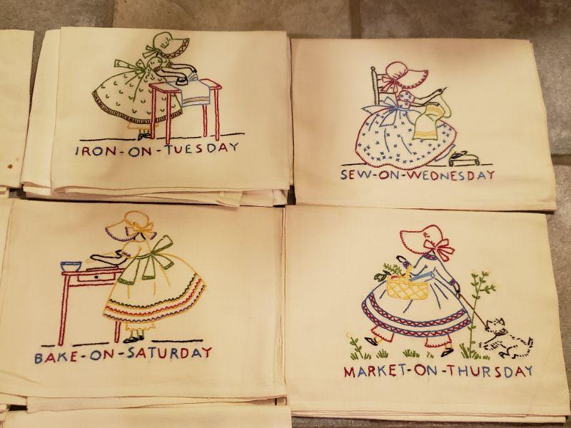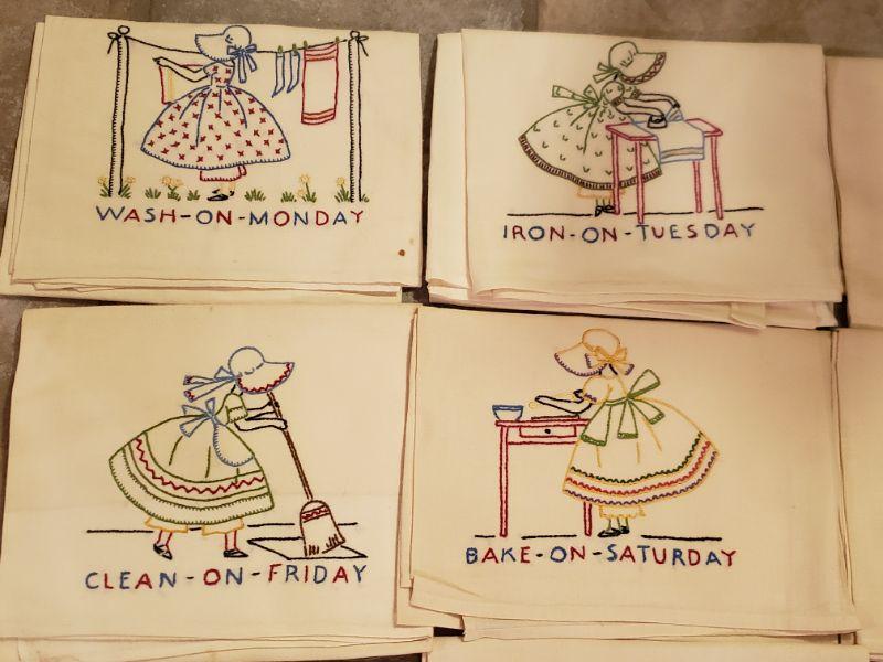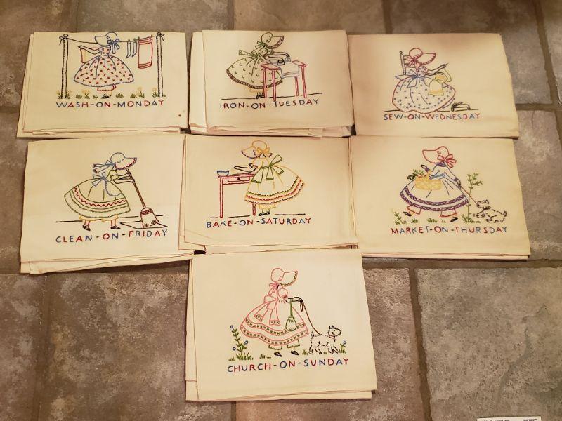 Lot 517: Vintage 7 Days of the Week Linens