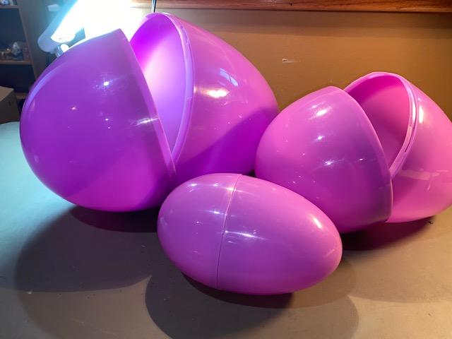 large amount of eggs and one large nesting egg. The largest egg is 18" and it has two eggs inside it