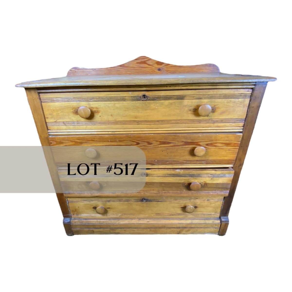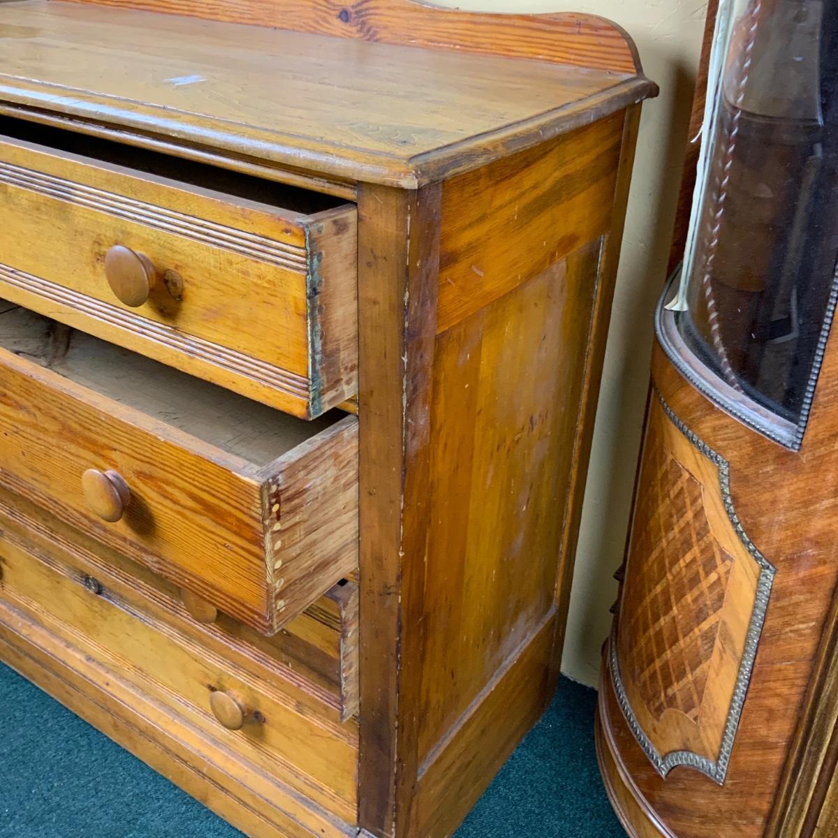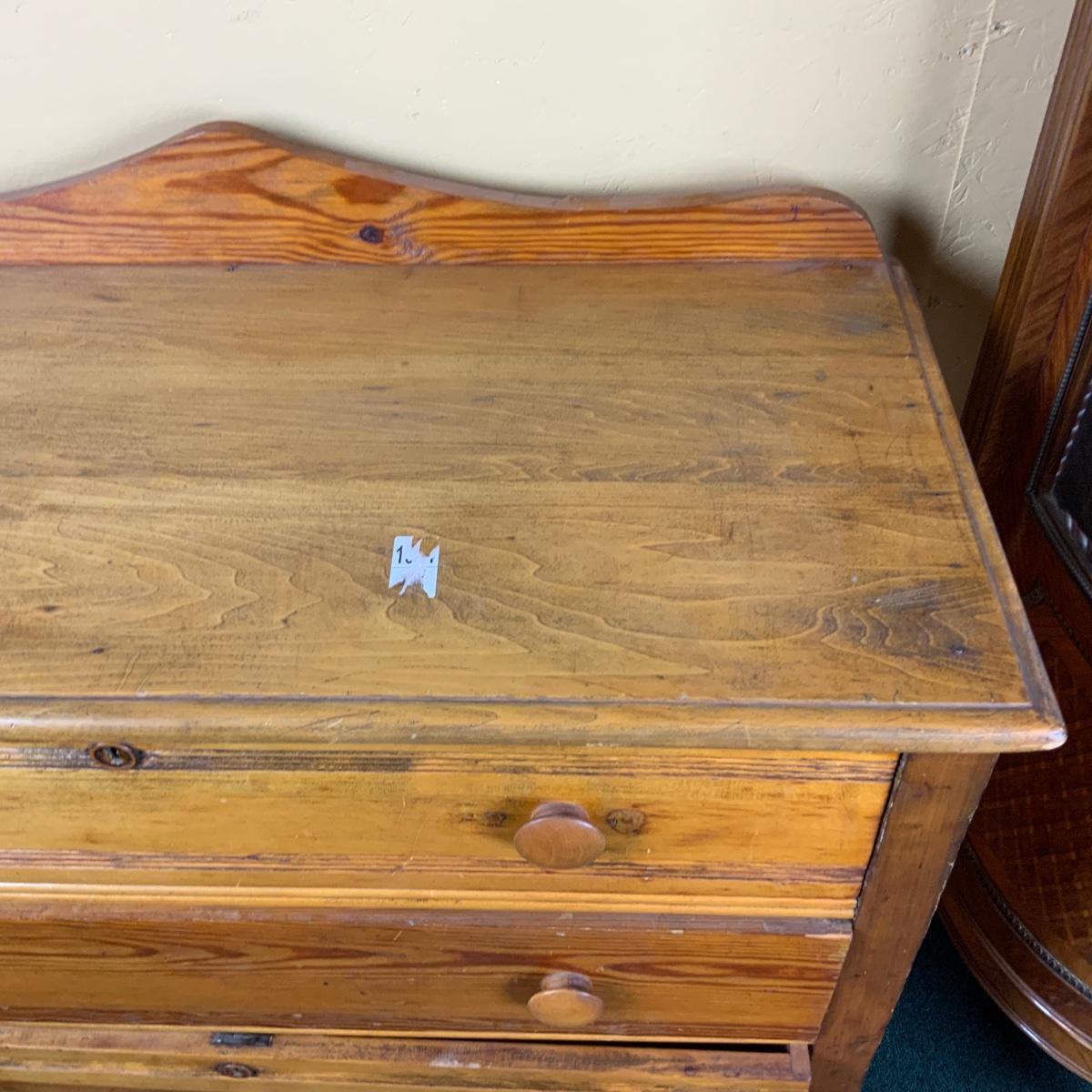 Pine Chest of Drawers. Rustic and perfect for the cabin! //::\\ Please see photos for details and condition. No attempt has been made to hide any imperfections. All items listed in this auction are warehouse items, and need to be cleaned. A majority of the items need restoration as well. All items are sold AS IS and WITHOUT GUARANTEE. If you are uncertain about an item, DO NOT BID. Due to the nature of this online auction in-person inspection is HIGHLY recommended. All Sales are FINAL. Pick Up Times are FIRM. Please confirm with your own schedule that you can pick up in the scheduled times listed in the Terms and Conditions. Any questions please message the auctioneer. DO NOT Contact The Harp Gallery.