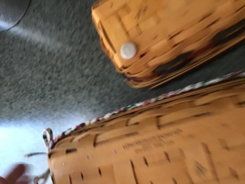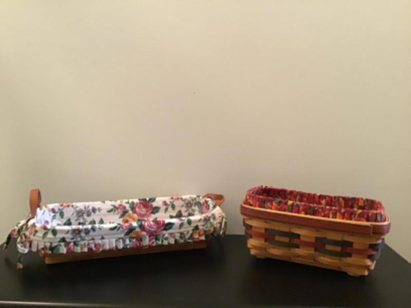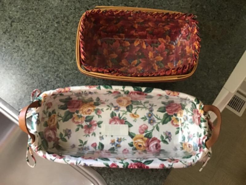 1 - has 2 handles a fabric and plastic liners 14” x 6”