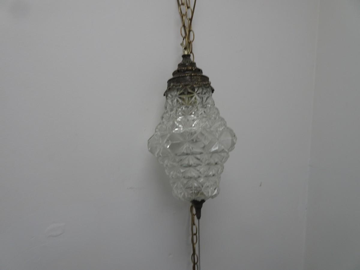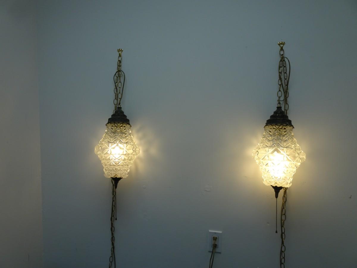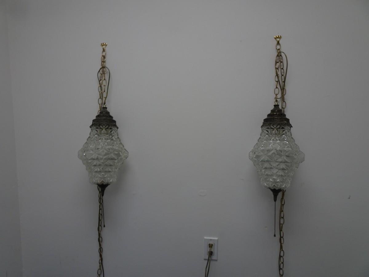 TWO VINTAGE GLASS HANGING SWAG LAMPS