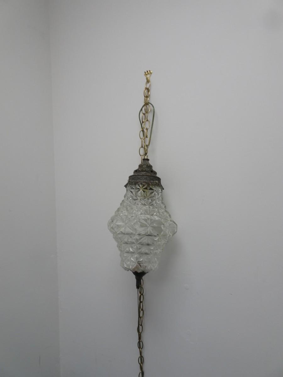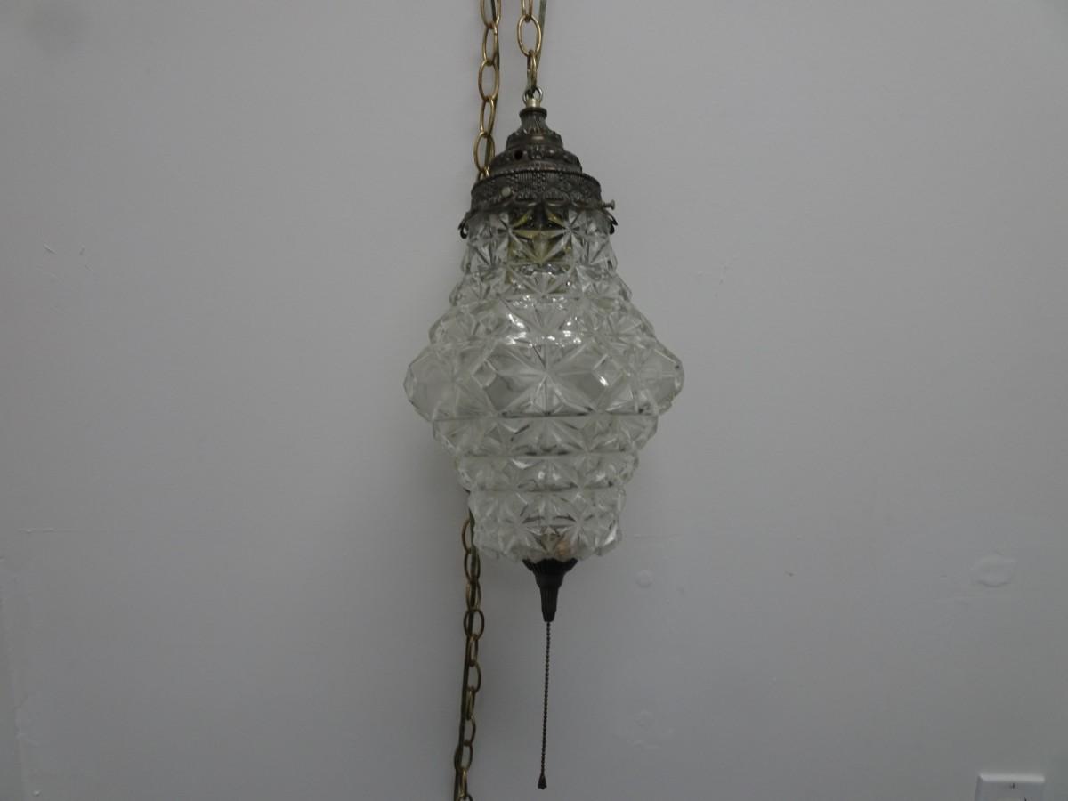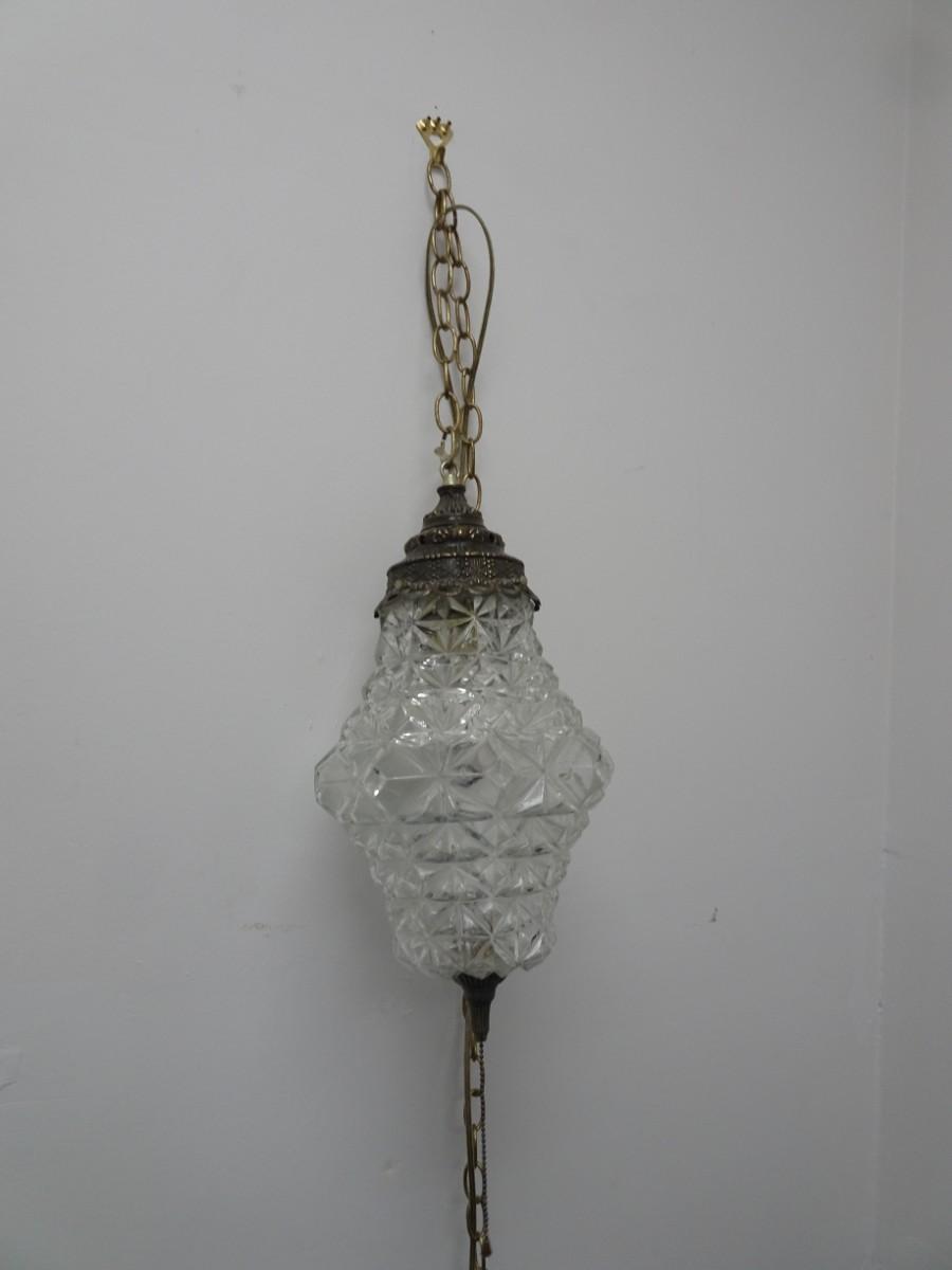 TWO VINTAGE GLASS HANGING SWAG LAMPS