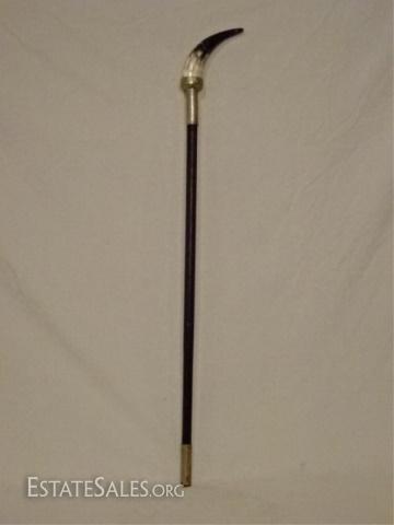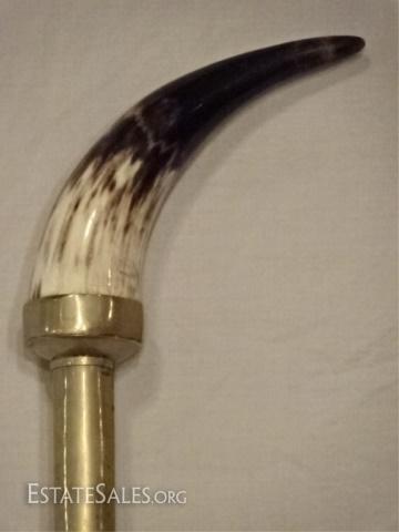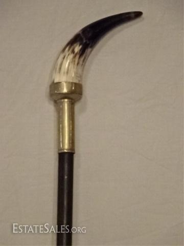 LOT 51B: NATURAL STEER HORN HANDLE WALKING STICK, EBONIZED FINISH, VERY GOOD CONDITION, 28" X 5", SKU387.37