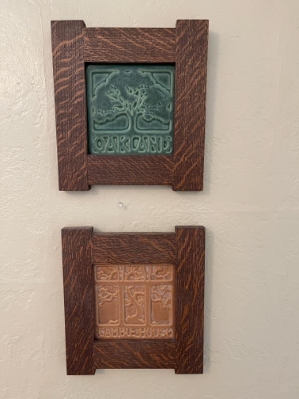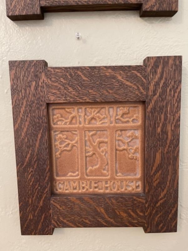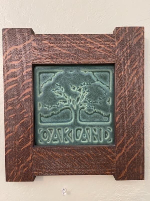 Lot 51BR. Antique oak framed “˜Winters’ tiles(Arts and Craftsman (Oakland and Gamble)--$150