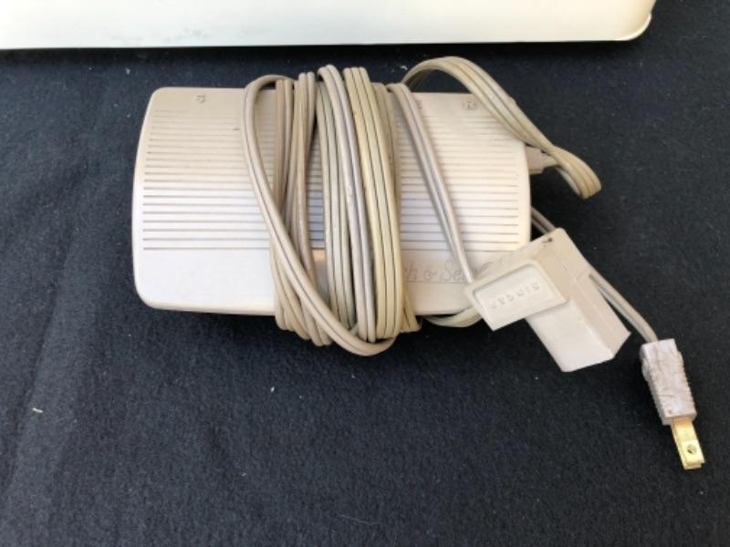 Lot 51L. Vintage Singer Sewing Machine Touch and Sew II Model 775,  in case with box of attachments and bag of sewing notions, and works “” $125