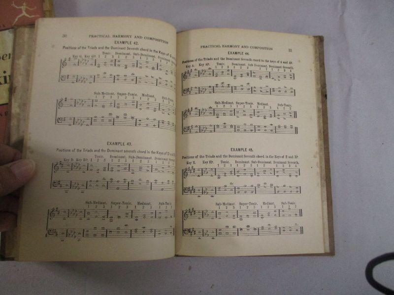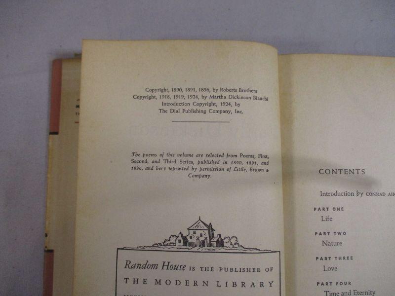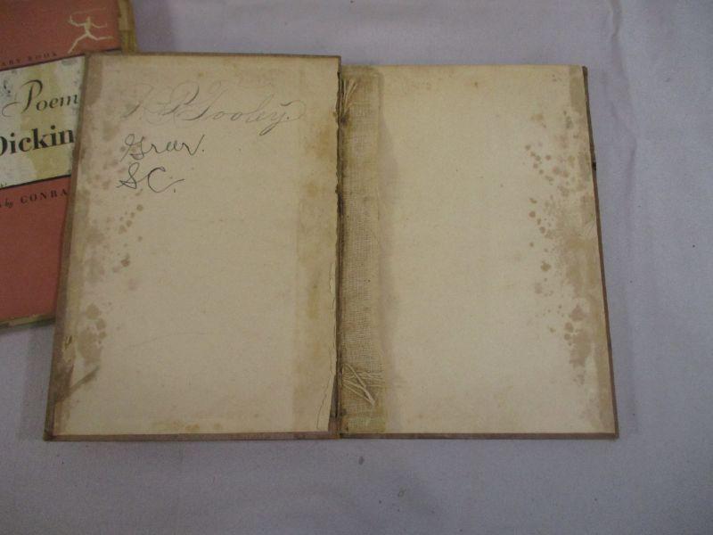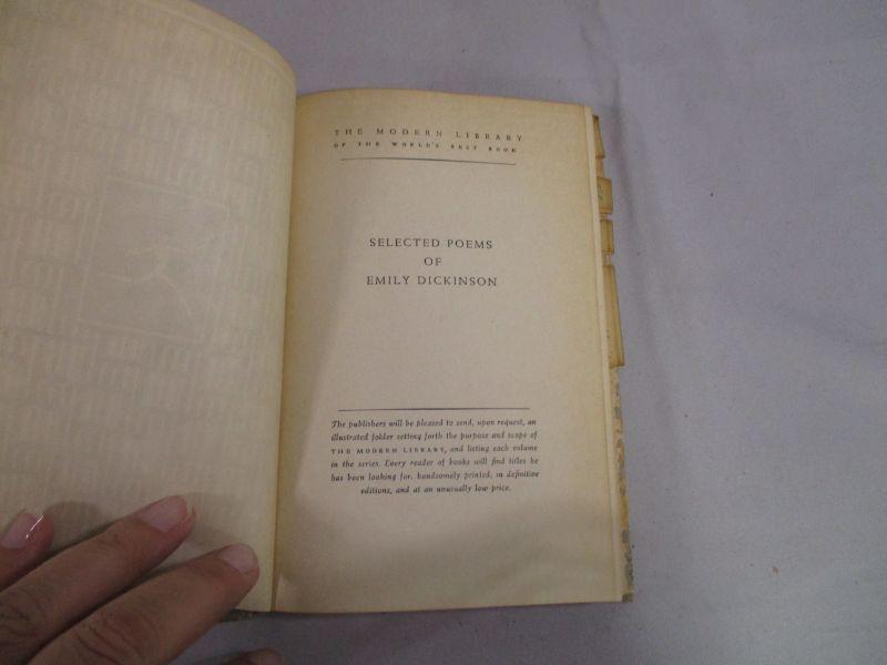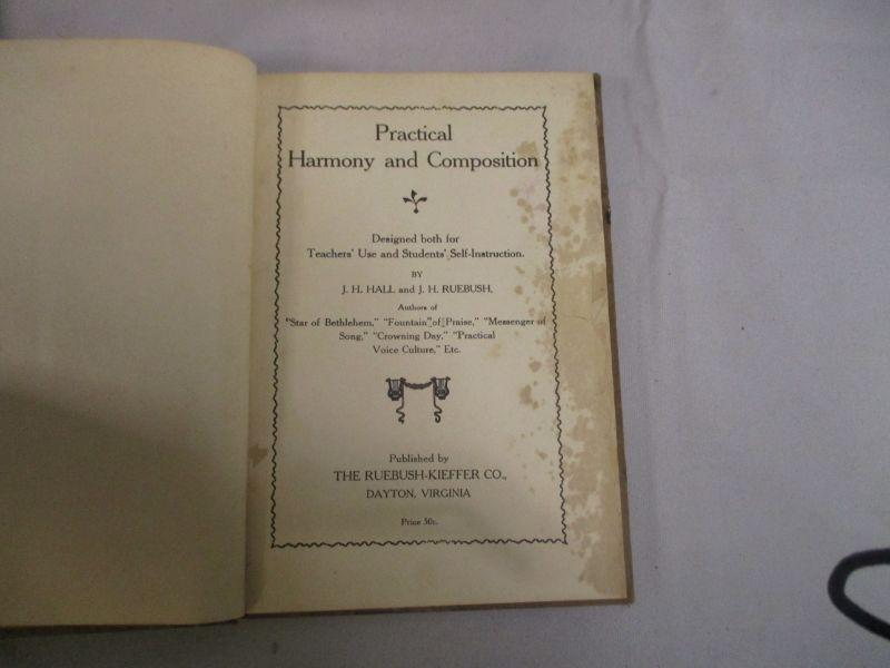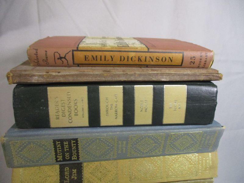 The (7) Twentieth Century Classics novels in good, gently read condition, as is the 1981 Readers Digest collection. The Emily Dickinson collection was well read and notated through, but is still in decent structural condition. The 1897 Practical Harmony and Composition book has issues, but seems to be intact.