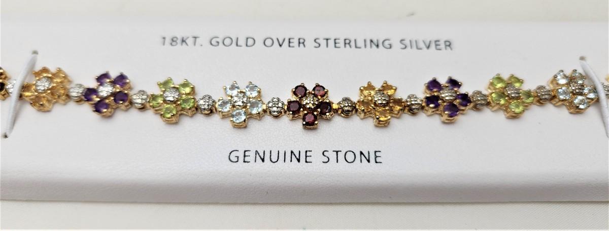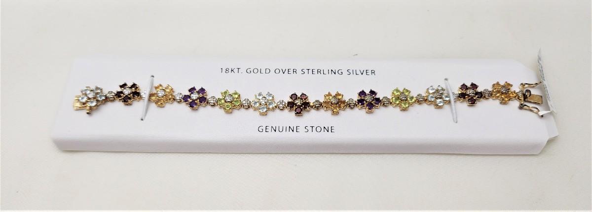 Lot #52 18kt Gold over Sterling Silver Gemstone Bracelet