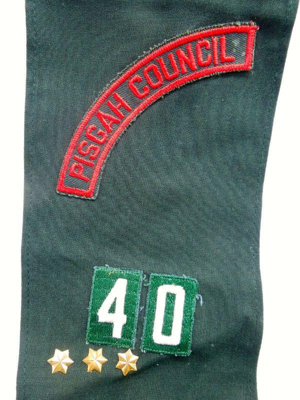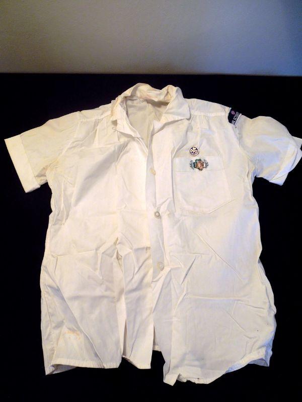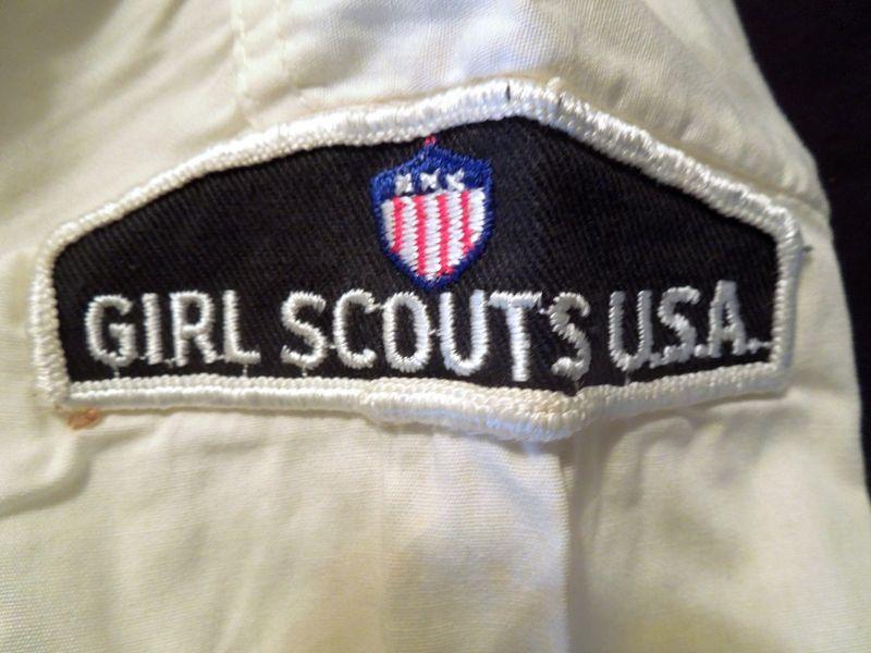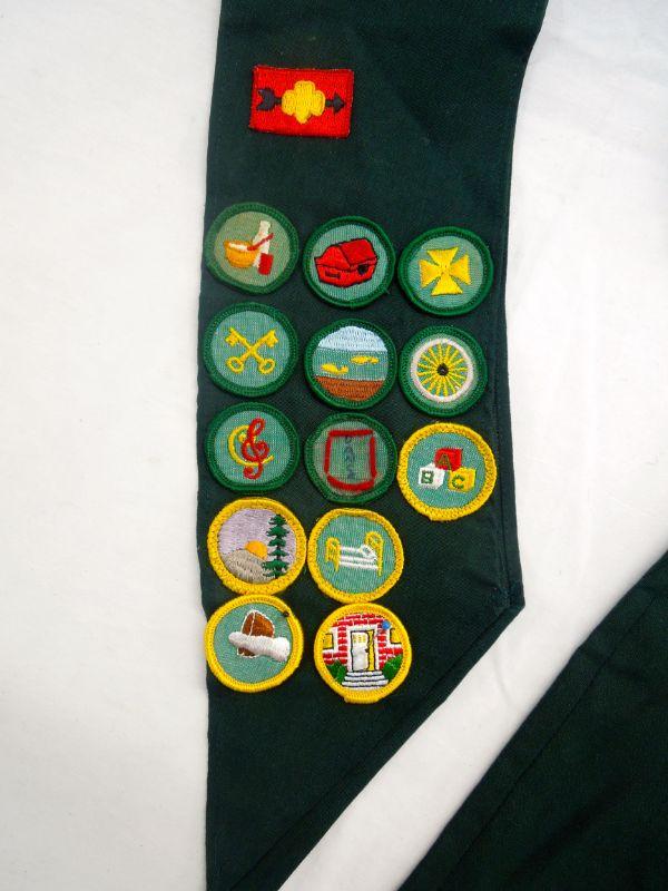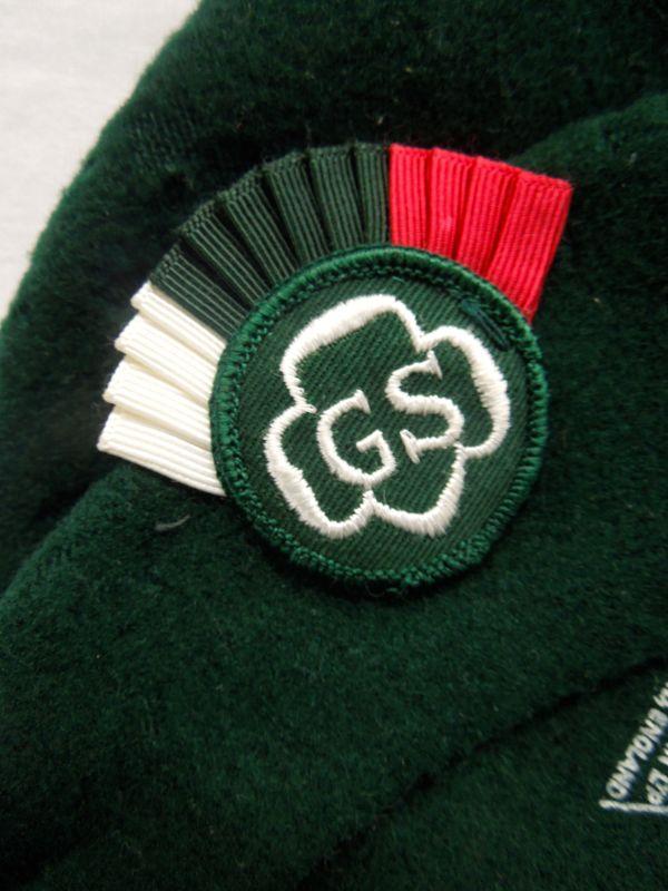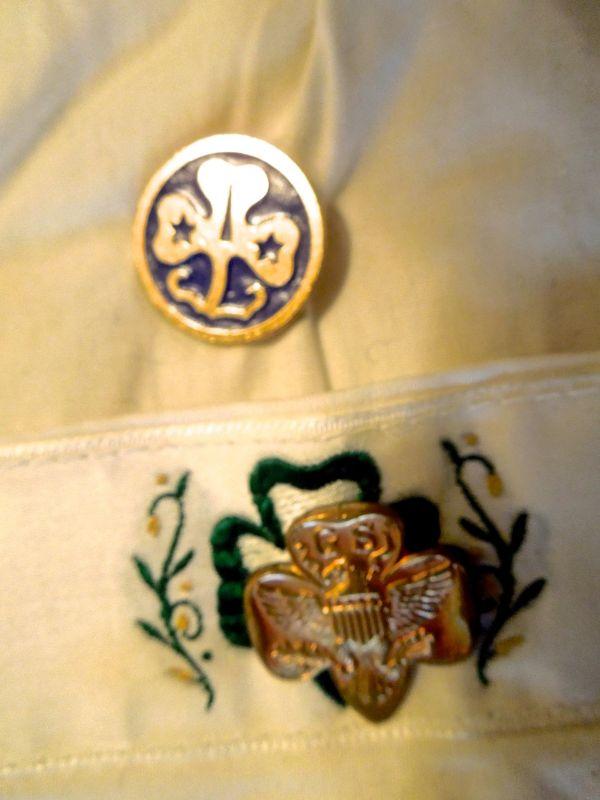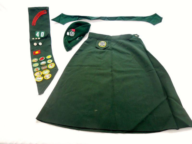 felt beret; sash with badges and pins; skirt and collar. All in very good condition. Beret has some flea bites, but no holes.