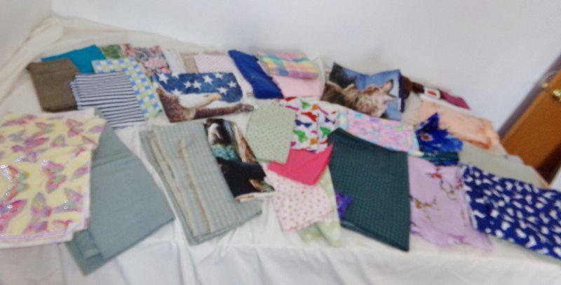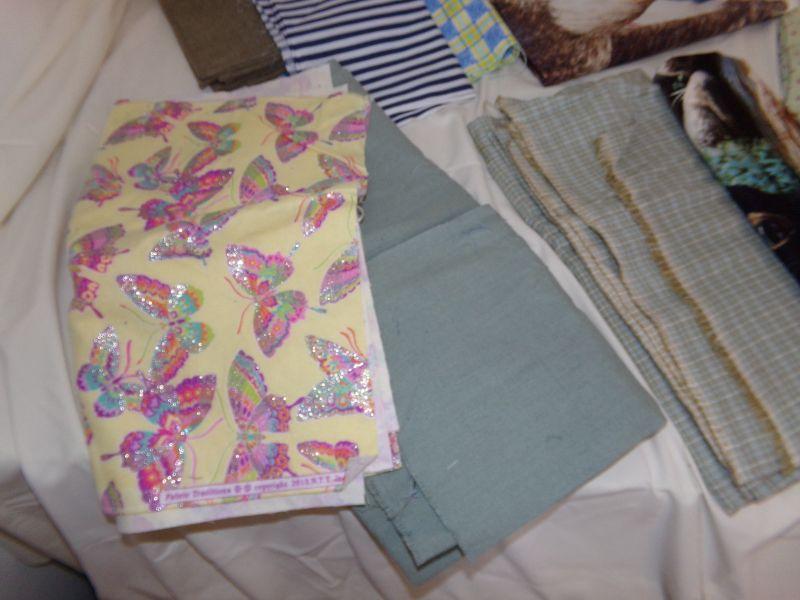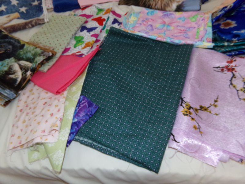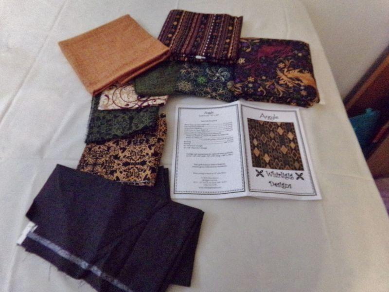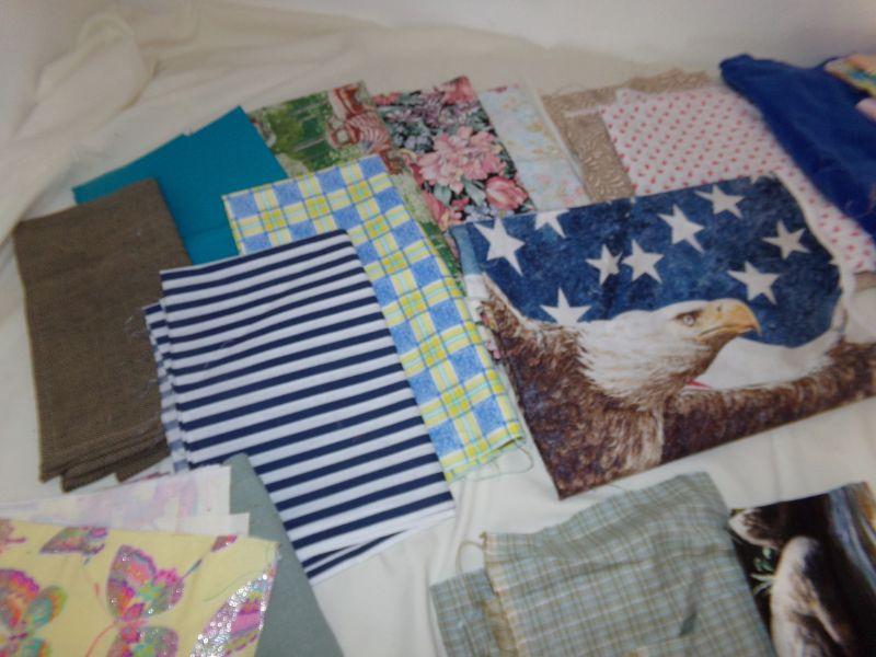 THIS KIT PROVIDES THE MATERIAL AND INSTRUCTIONS NEEDED TO MAKE A QUILT. THIS LOT ALSO INCLUDES MANY PIECES OF MATERIAL (SOME SILK)