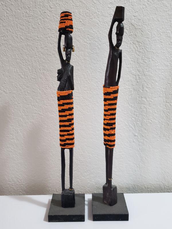Lot 52: Handcarved and Beaded African Man and Woman & Child Sculpture
