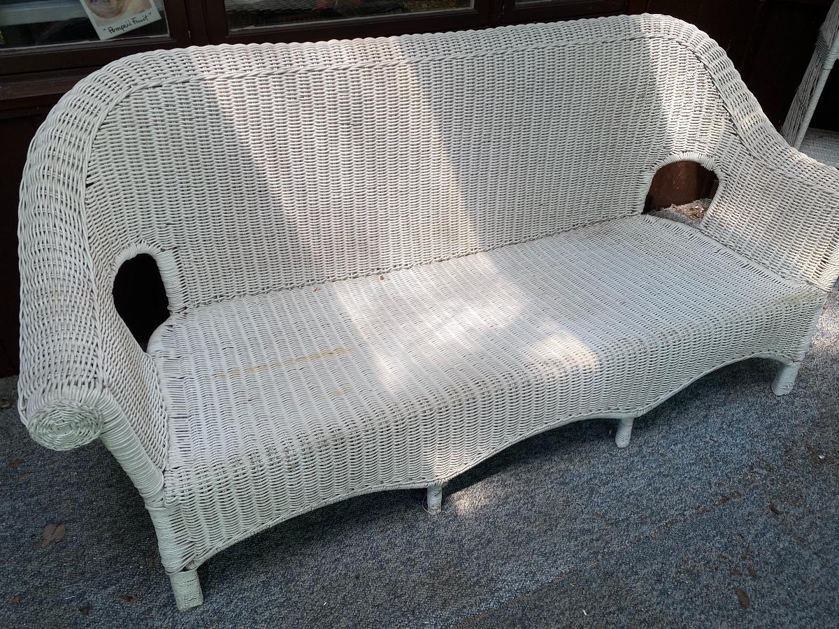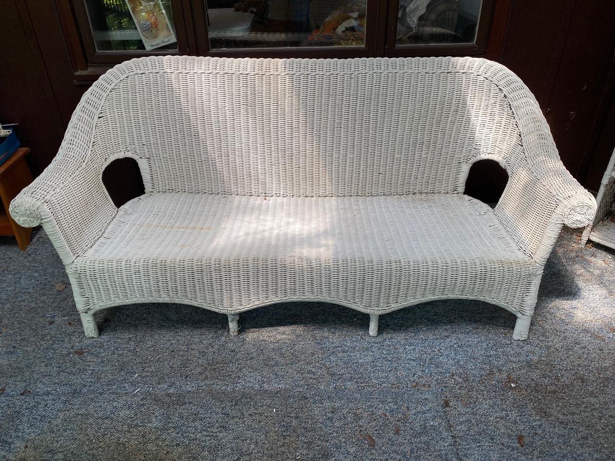 Lot 52: White Wicker Couch