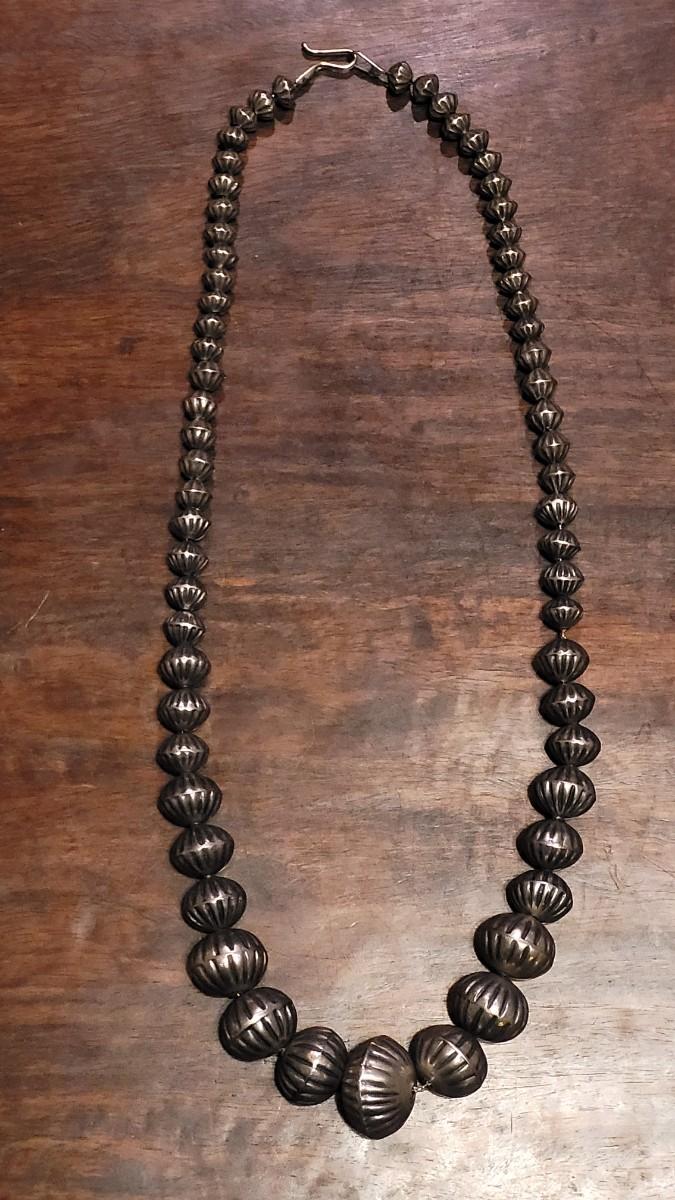 Lot 52: Old Pawn Navajo Stamped Graduated Bead Necklace