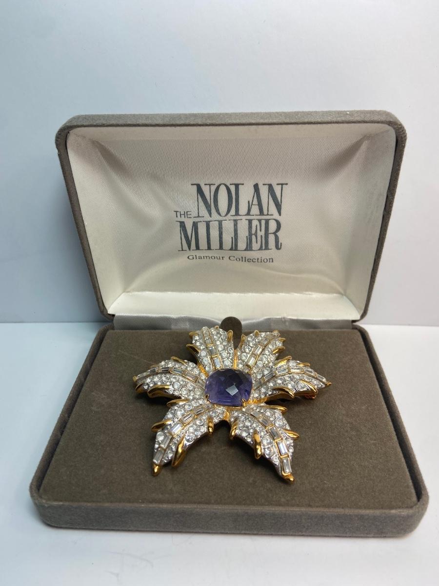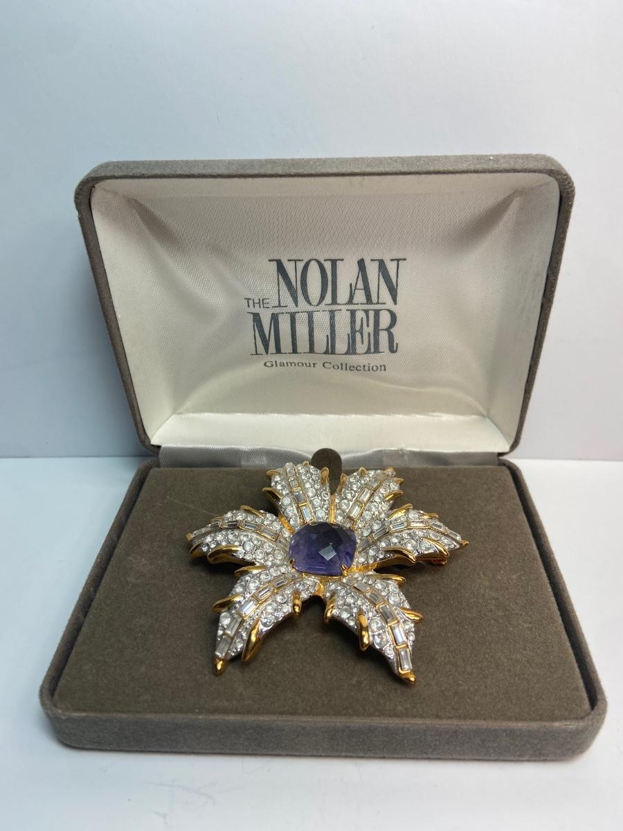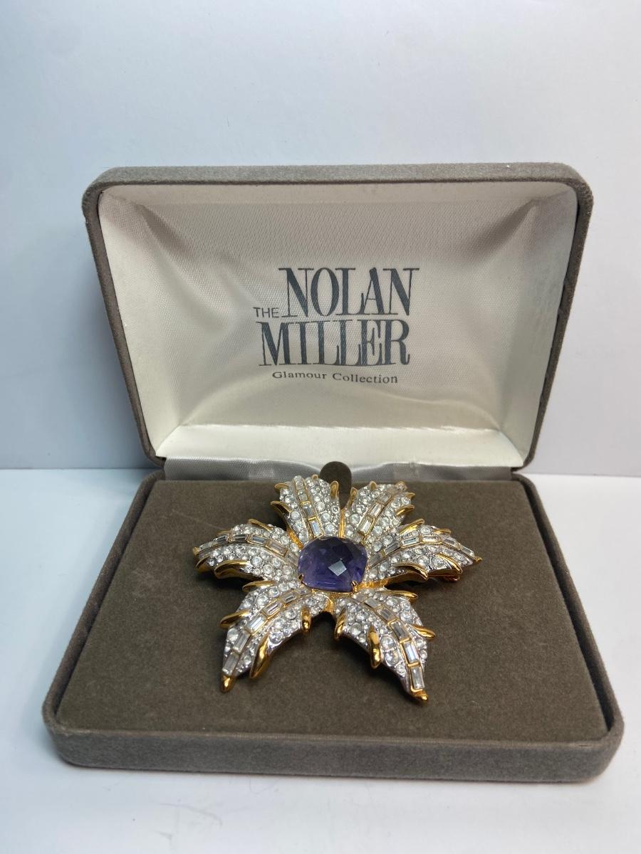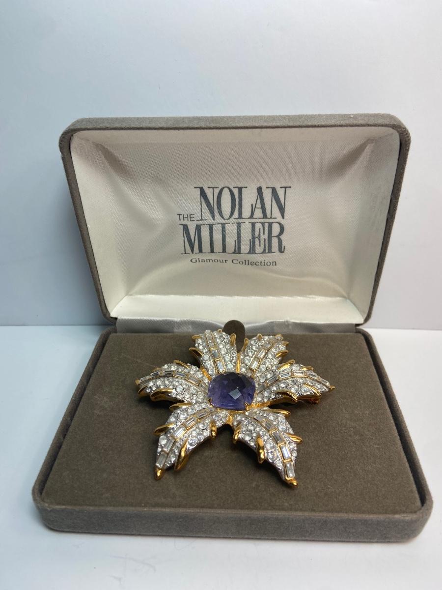 Classic Nolan Miller Brooch with Faux Amethyst center. Preowned but never worn.