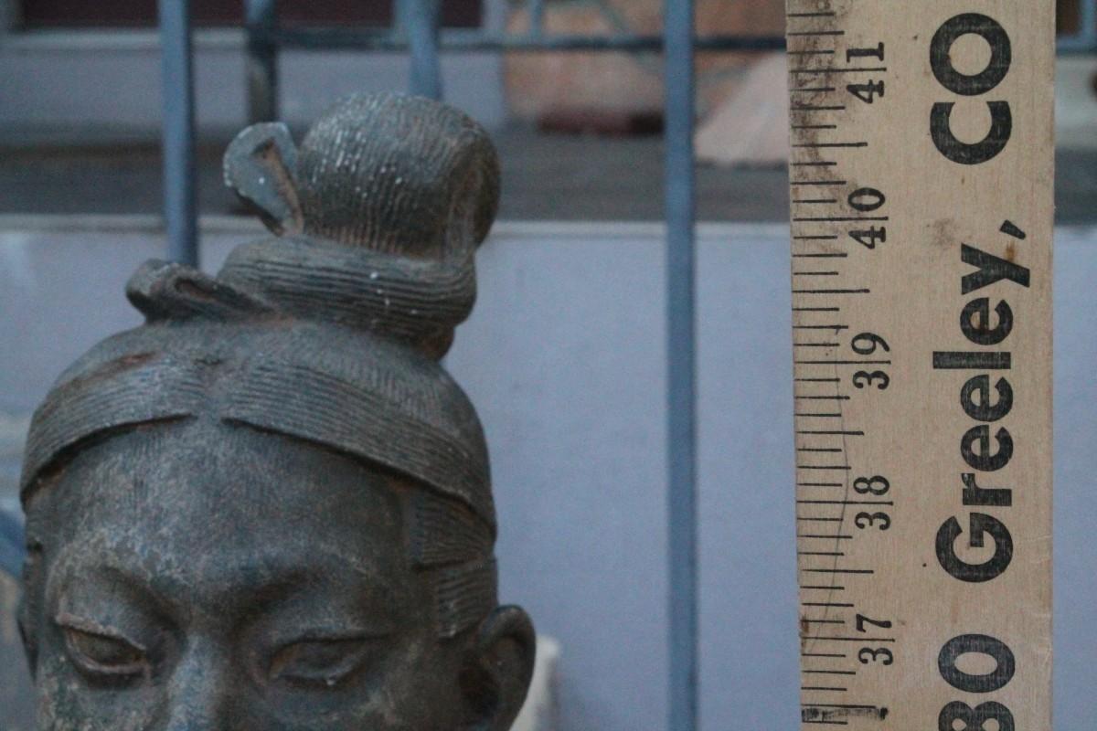 Inspired by traditional Chinese sculpture and ancient tomb warriors, this beautifully crafted design comes from Henri Studio workshop. The kneeling archer figure provides a handsome accent for gardens and other outdoor spaces. Each figure is hand-crafted and custom made to order using a cast stone technique perfected by Henri Studio artisans. Made in the USA.