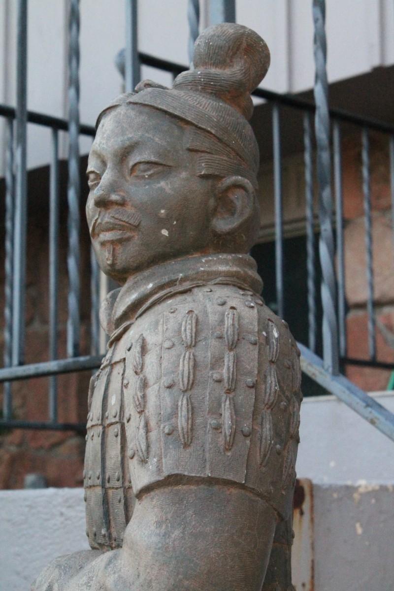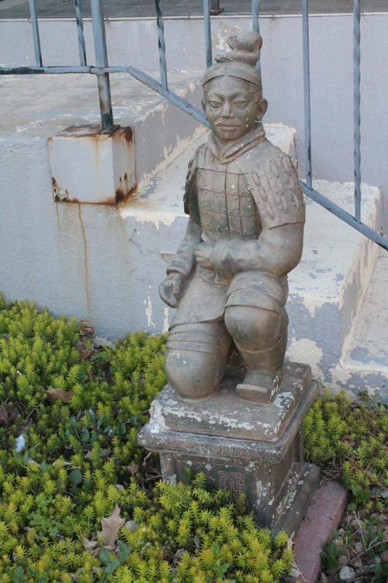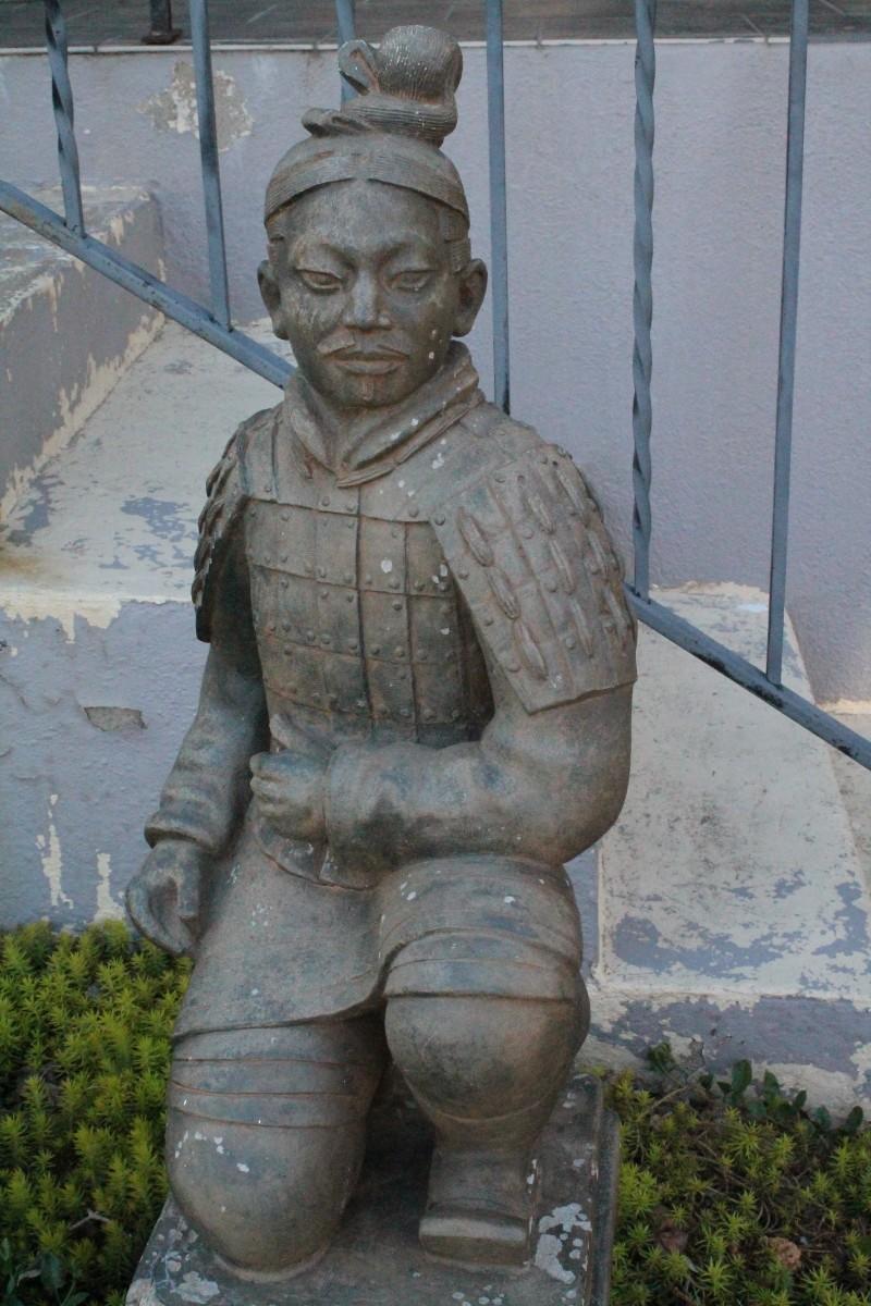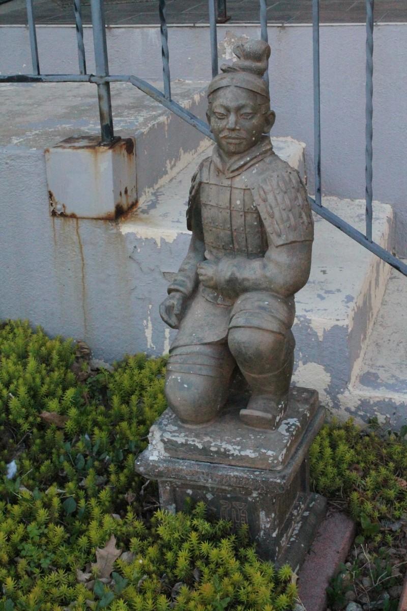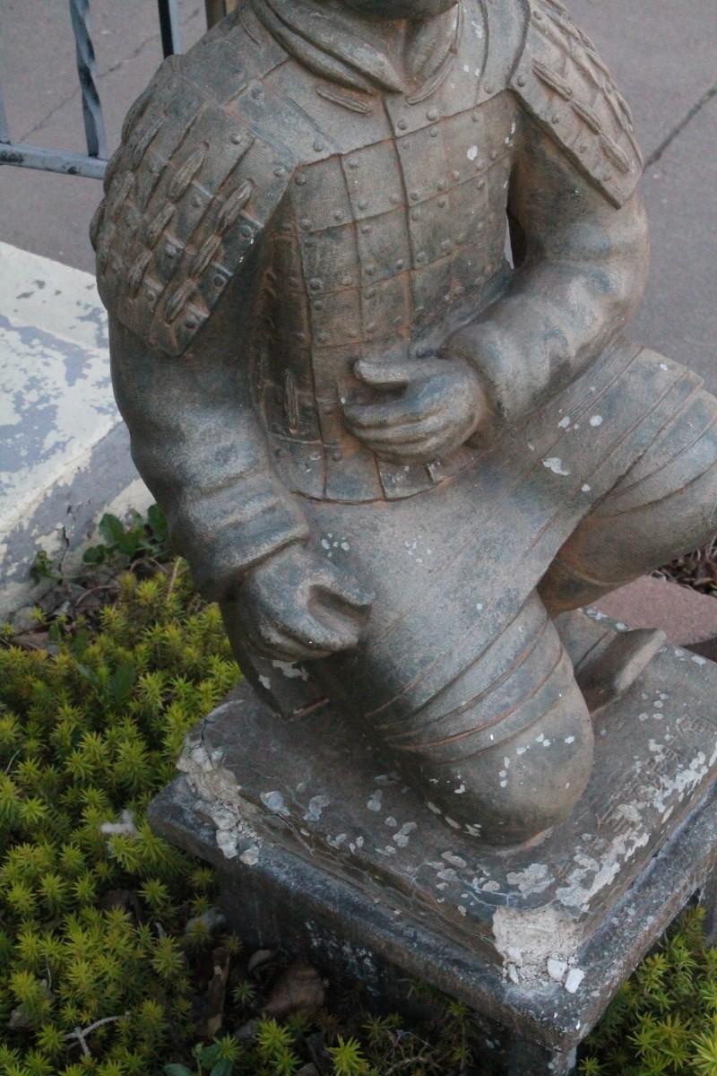 Lot 52: Vintage HENRI STUDIOS Outdoor Garden Japanese Replica 'Kneeling Archer' CEMENT statue of Famous Soldier