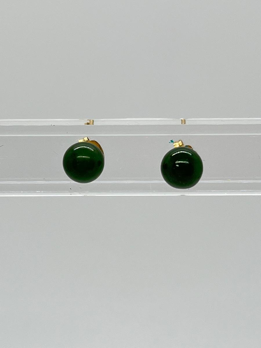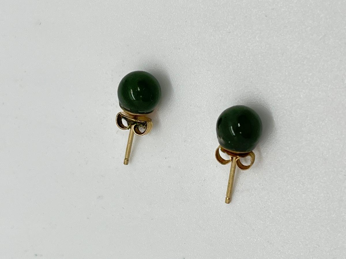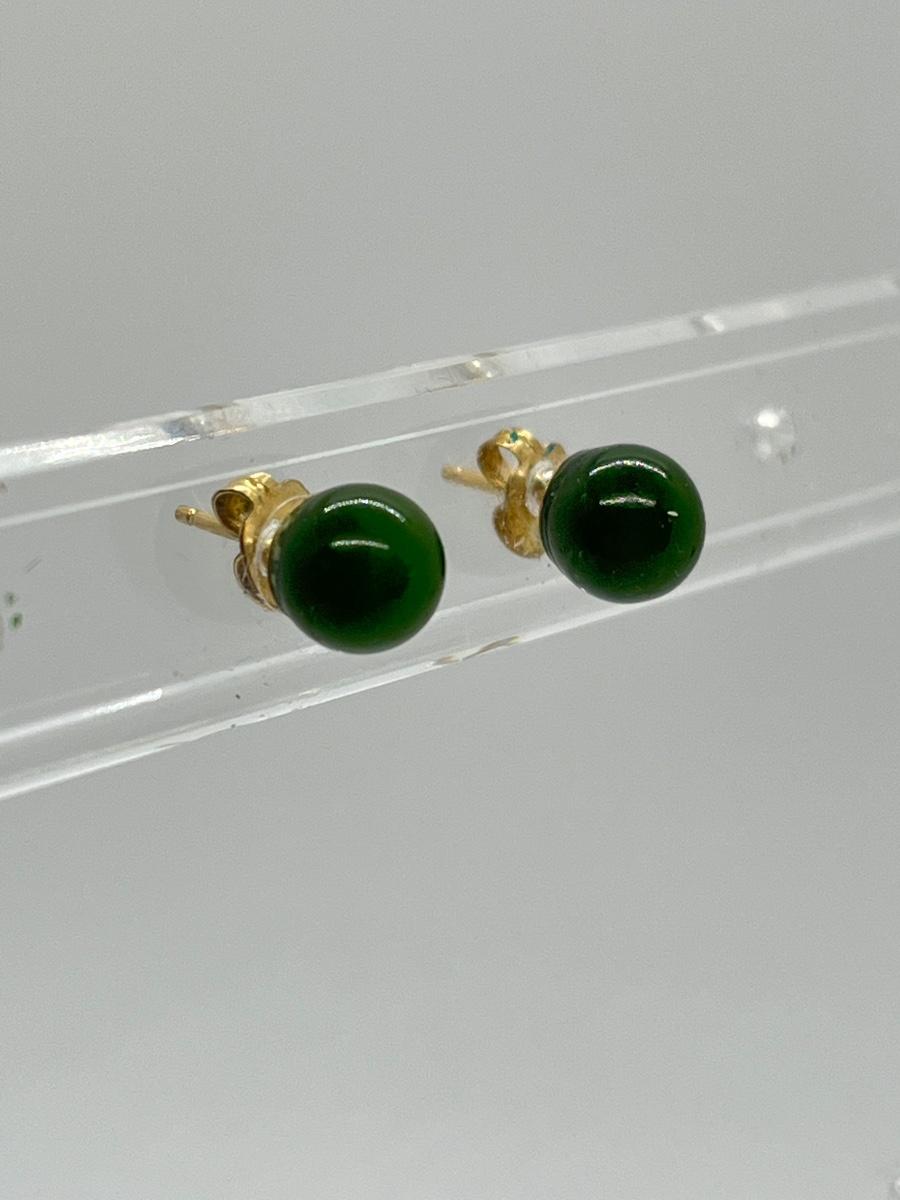LOT 52: Pair of Jade Pierced Earrings with 14K Gold Posts