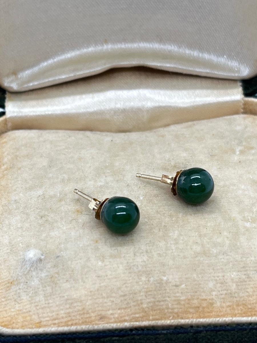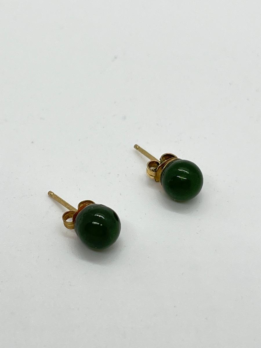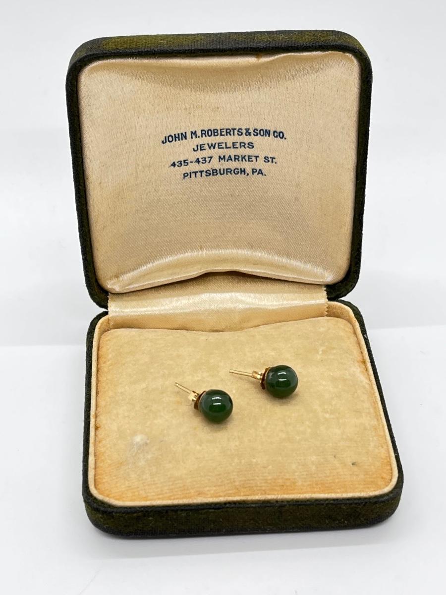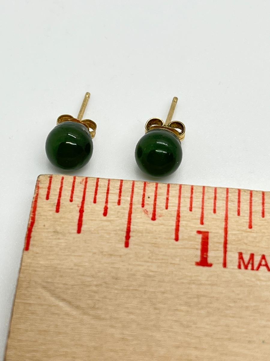 LOT 52: Pair of Jade Pierced Earrings with 14K Gold Posts
