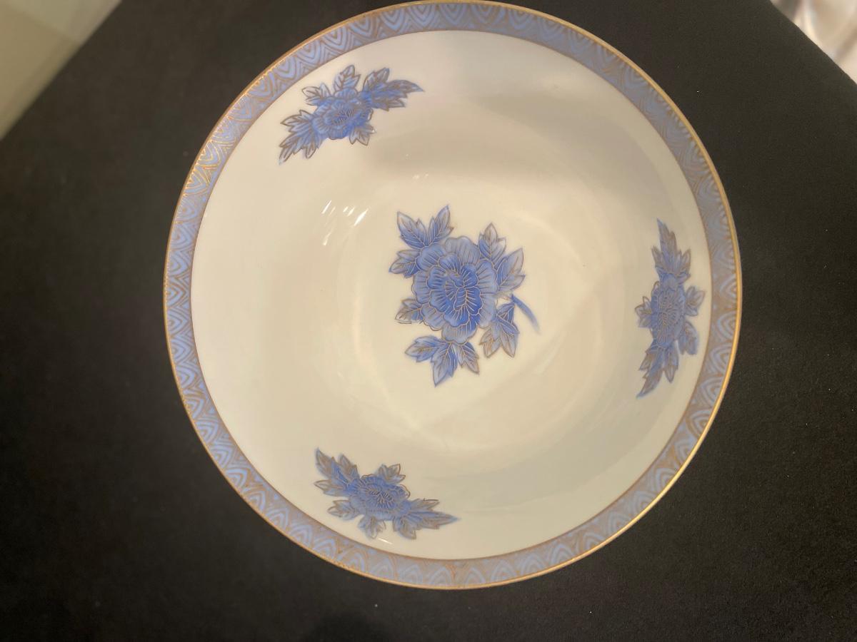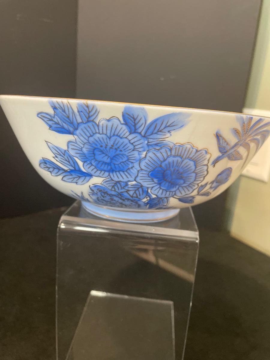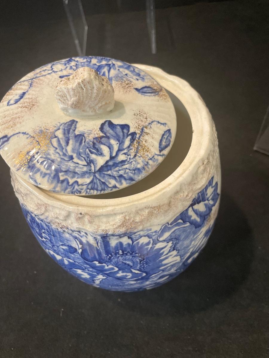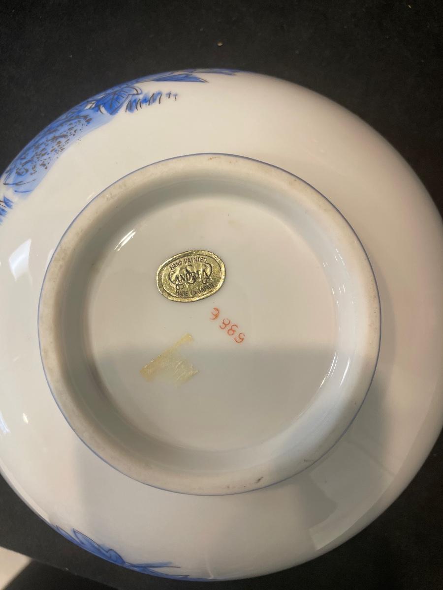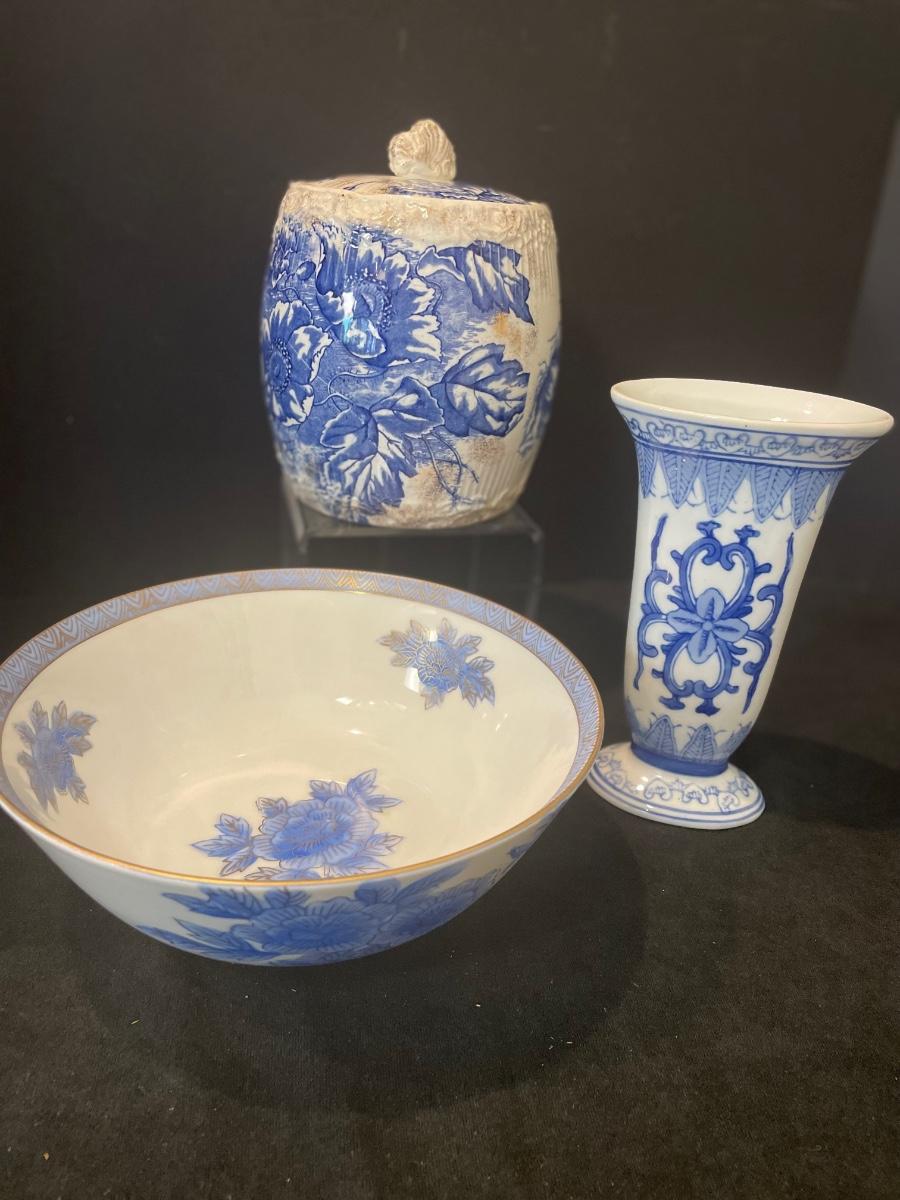 Hand painted vintage Andrea Japan bowl, antique cookie jar from England (looks very old) and a porcelain vase.