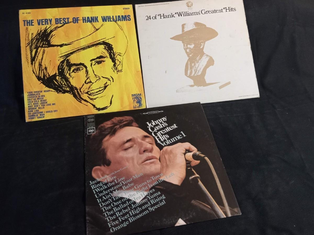 LOT 52 JOHNNY CASH & HANK WILLIAMS VINYL RECORD ALBUMS