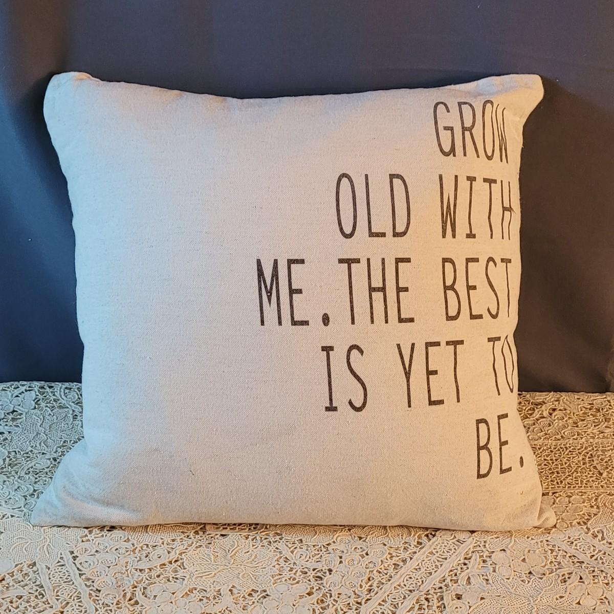 Lot 52: Grow Old With Me. Feather Pillow
