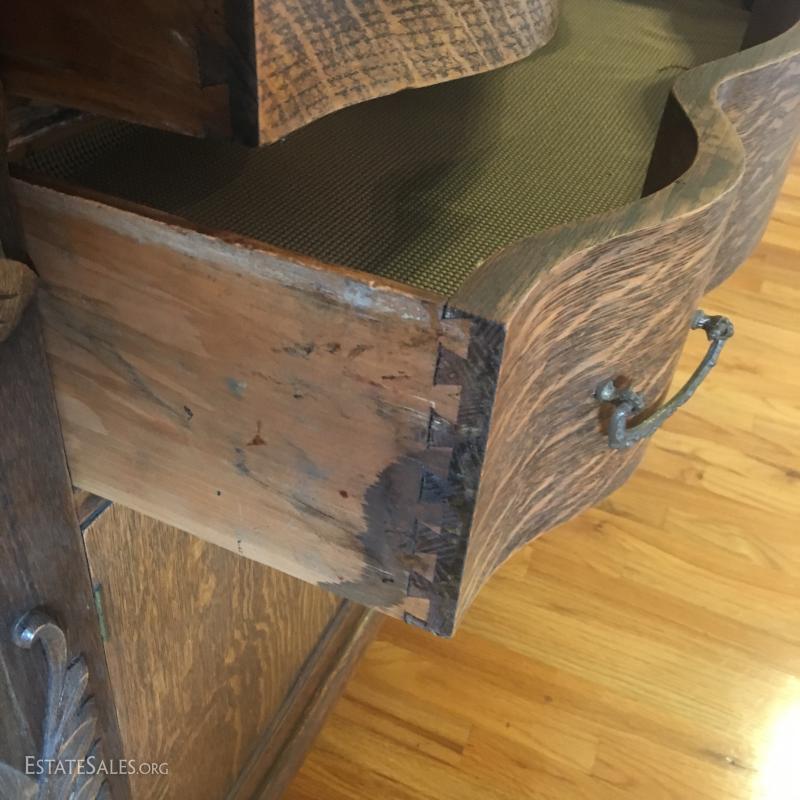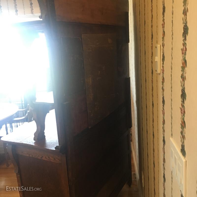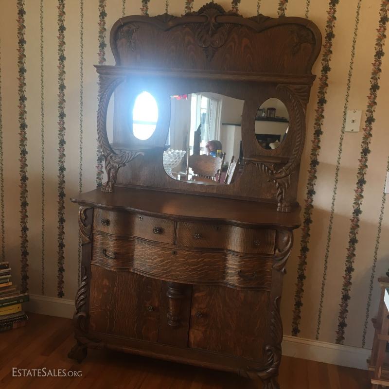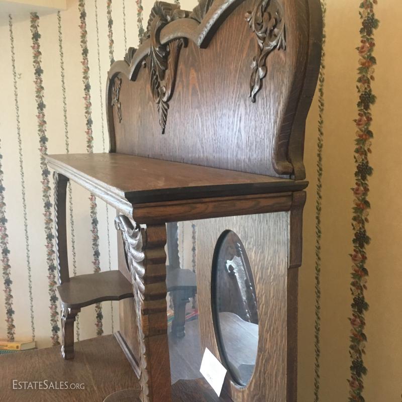 Tiger Oak Like Two Piece Mirrored Sideboard/Buffet in very good condition.