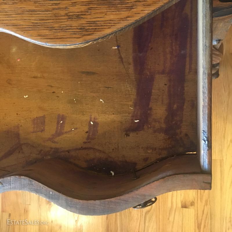 Four Metal Castors on Feet, Two Doors, Main Curved Drawer and two Split Curved Drawers.