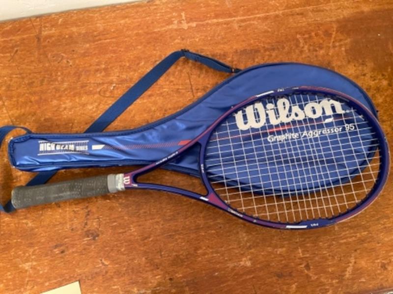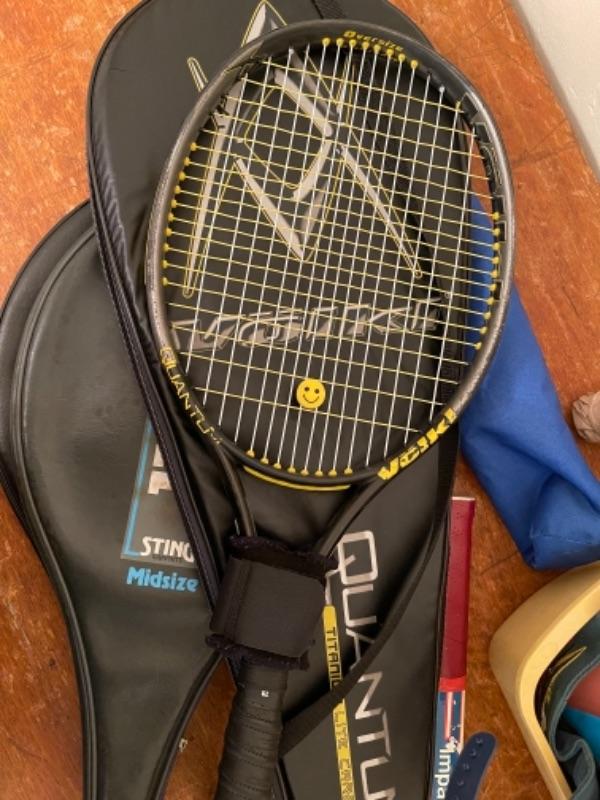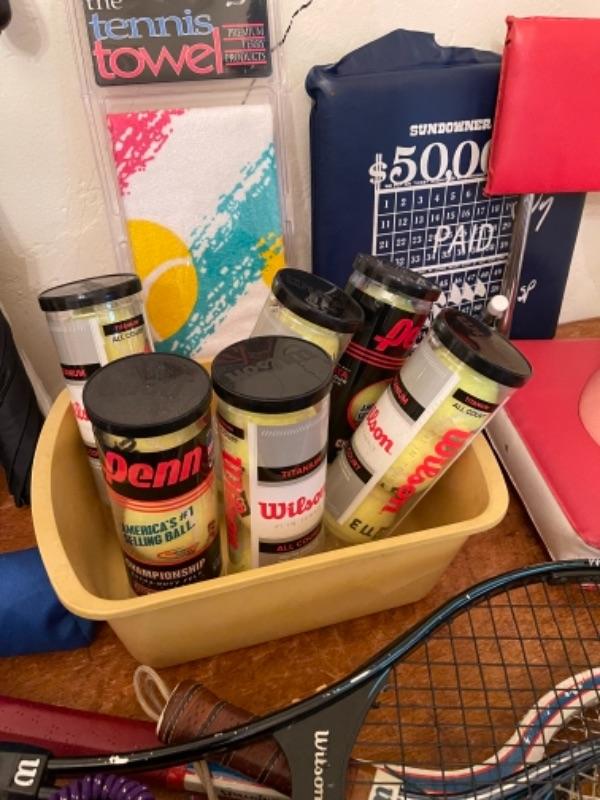 Lot 52. Assortment of tennis equipment and accessories (6 rackets, stadium seat), etc.--Was $65 - - Now $25
