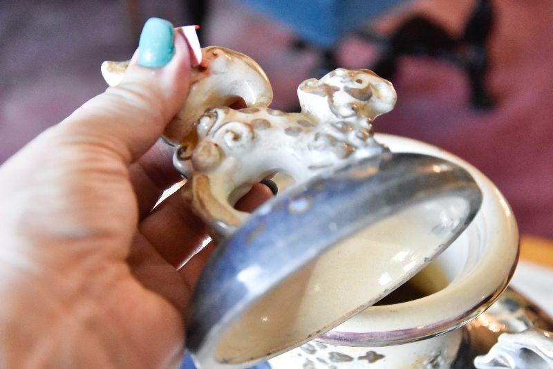 Lot 52: Beautiful Hand Painted Vintage Urn with Squirrels