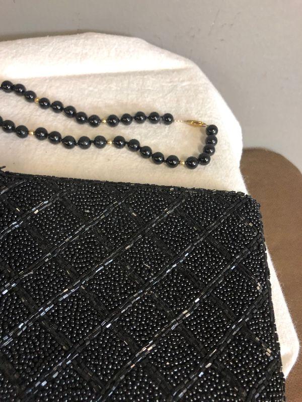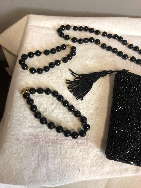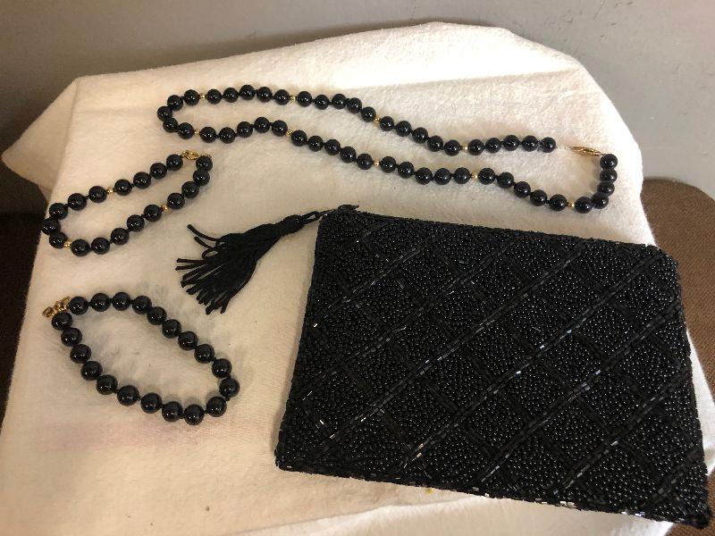 Lot# 52 BLACK Beaded set of Necklace, Bracelets (2) and Purse